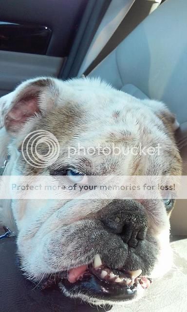 This poor boy just sits and stares at me, no matter where I go in the house he just stares at me. The picture I am about to post is last weekend when I went to pick him up. Poor thing has his chin on my console and just stared at me the whole way home. He can be sound asleep and if I move he will sit up and just stare at me. He was sucking his Lions nose last night and just stared at me. He is such a sweet heart and I already know adores me and Joe. But the staring is really sad, it's like he's waiting to get the rug pulled out from under him again. Which will NEVER happen again! This is the pitiful picture I took in my car the day I picked him up to come to his forever home.