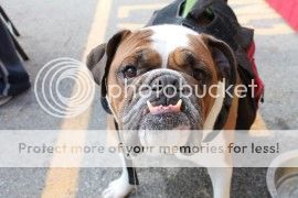 Hulk is a red and white, beautiful English Bulldog with a terrific smile. Hulk looks at you with those big brown Milk Dud eyes. Hulk is a larger size English Bulldog. He is working on losing a few pounds. Hulk is very good on a leash, knows commands and generally very well behaved.