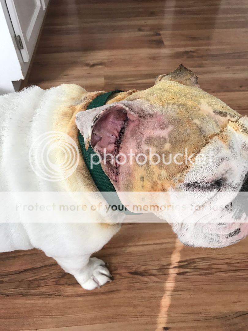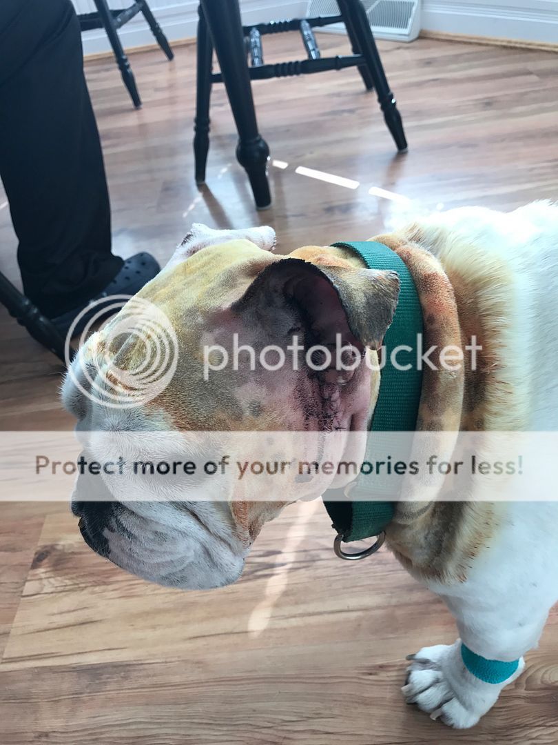 That's very uncharacteristic for him. He's been doing very well on Apoquel and rarely ever scratches. Knowing how quickly a waxy dirty ear can turn into something nasty he got a thorough ear cleaning and yes, his right ear was ready for maintenance. All is good now. I encourage everyone to watch out for the signs of dirty ears...scratching and head shaking. I wish that our boy Kash had been so lucky as to have regular ear maintenance. He came home from surgery today after bilateral Total Ear Canal Ablation. Recovery will be several weeks. He's really doing quite well although he looks to be a mess. Doc says he's probably had a headache for the past...who know how long...maybe years!