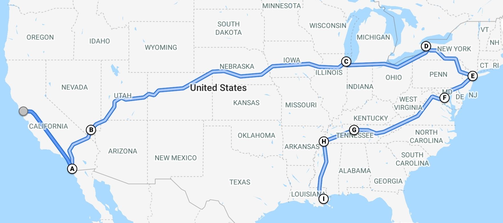 I use to go to the US often. Montreal is right above New York. How long you’re staying? From your map I see it’s going to be a long vacation n driving. Definitely you should stop in NY. Stay on the tourist side or to see most of the best touristic area go with tour guides/buses etc... you want to see beautiful sceneries Montana Colorado. You’ll be in the Rockies. New Orleans is fantastic. My son was there last year and loved it. California yes for sure.. You probably know all this but....Bare in mind winter in some area of the USA is harsh. Like Canada. Driving can be a challenge. As you know North America can get a lot of snow n sure can be cold. Need proper gears/wearables. Central USA, now this is my opinion, some places was ok but nowhere near like the coastline. (Less snow too). I personally like any states that sits along the coast. I’m a water person :) But members in here will guide you more as I didn’t visit all. :)