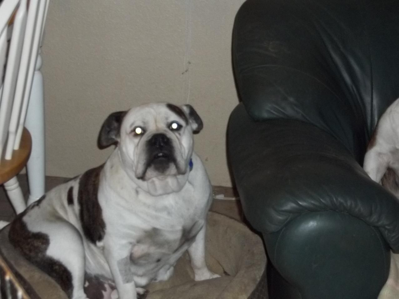 UPDATE for Destiny and Chance ... Well they slept through the night like little angels, Chance woke me a couple times with his sneezing but not his fault poor baby doesn't feel good! He takes his pills like a champ! They got up with mine and everyone went outside to go potty, so far mine have been great at being a welcoming crew and of course Chance and Destiny are happy to just follow them around. Destiny has found the dog bed beside my chair and made herself right at home, thank goodness, I have a heck of a time getting her to come out of the crate, she hears my voice and she wants so badly to come to me but she just seems so afraid, she lays down and tries to become invisible but at the same time will reach out to me with her paw, but TREATS oh how wonderful they are, I can normally lure her out with the promise of a treat, once she is out and near me she is such a sweet girl! Chance is happy to just wonder around, I have the back door open so he can go out as he pleases, he has found a spot by the sofa and is sitting there watching me type on the computer.