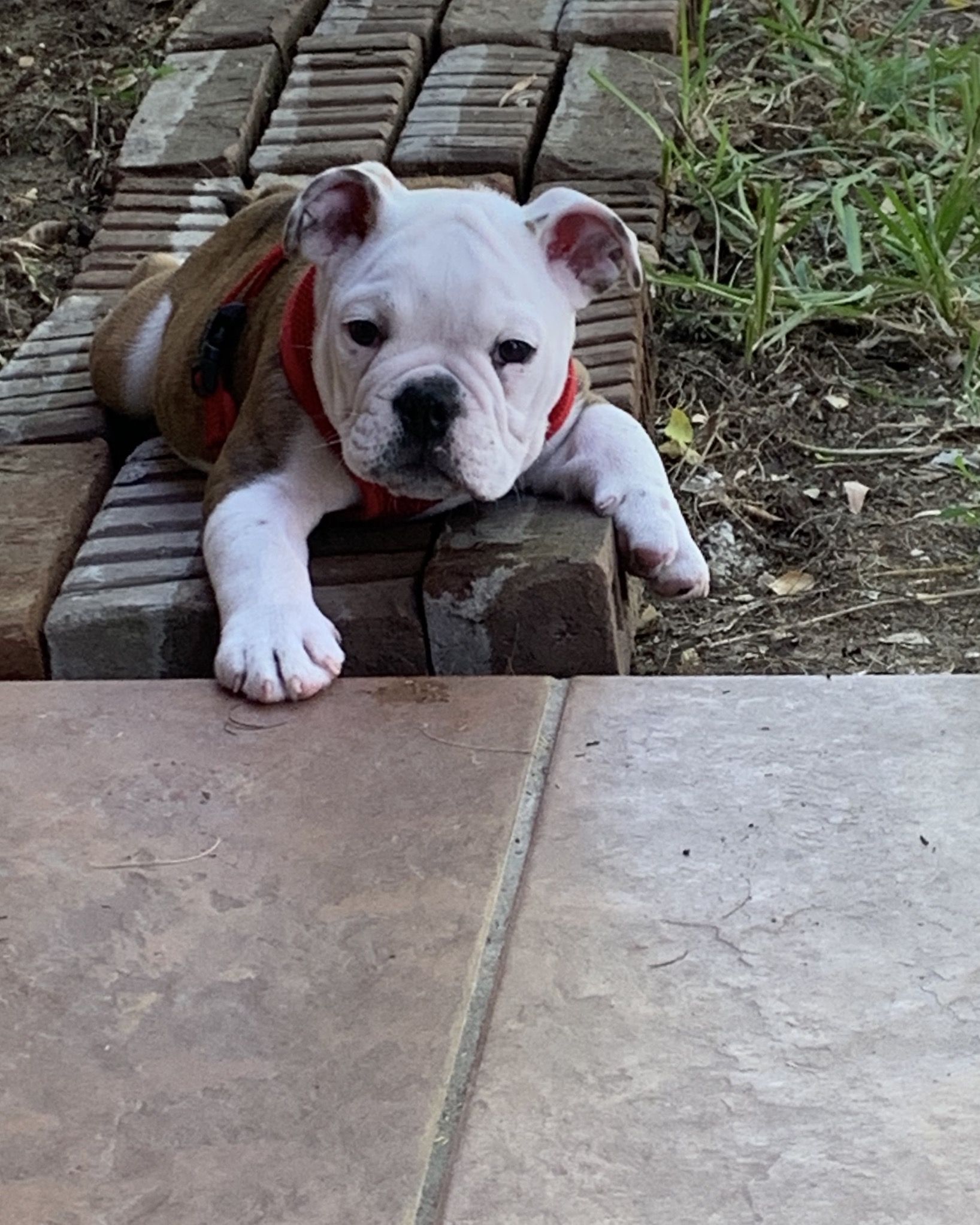 OMG!! This is SOOOOOO typical of bulldog behavior!! They do become obsessed with certain things- my first bulldog all of a sudden would not walk past ONE of my kitchen chairs ( I had 2). It was hysterical. We never had it fall over on him, so we could not understand the fear. I even switched them out one day while he was outside, and he knew right away- cowered past the switched chair!! Then we changed dishwashers- the new one had a big black logo on the front- OMG, he would not come in the kitchen for DAYS!! Have you ever seen the video of the bulldog that would not go past an electrical cord? It is hysterical- the dog would turn around and lay flat on his belly and scooch past the cord- legs spread eagle. THESE are the charms of our bulldogs!! He is adorable by the way!!!