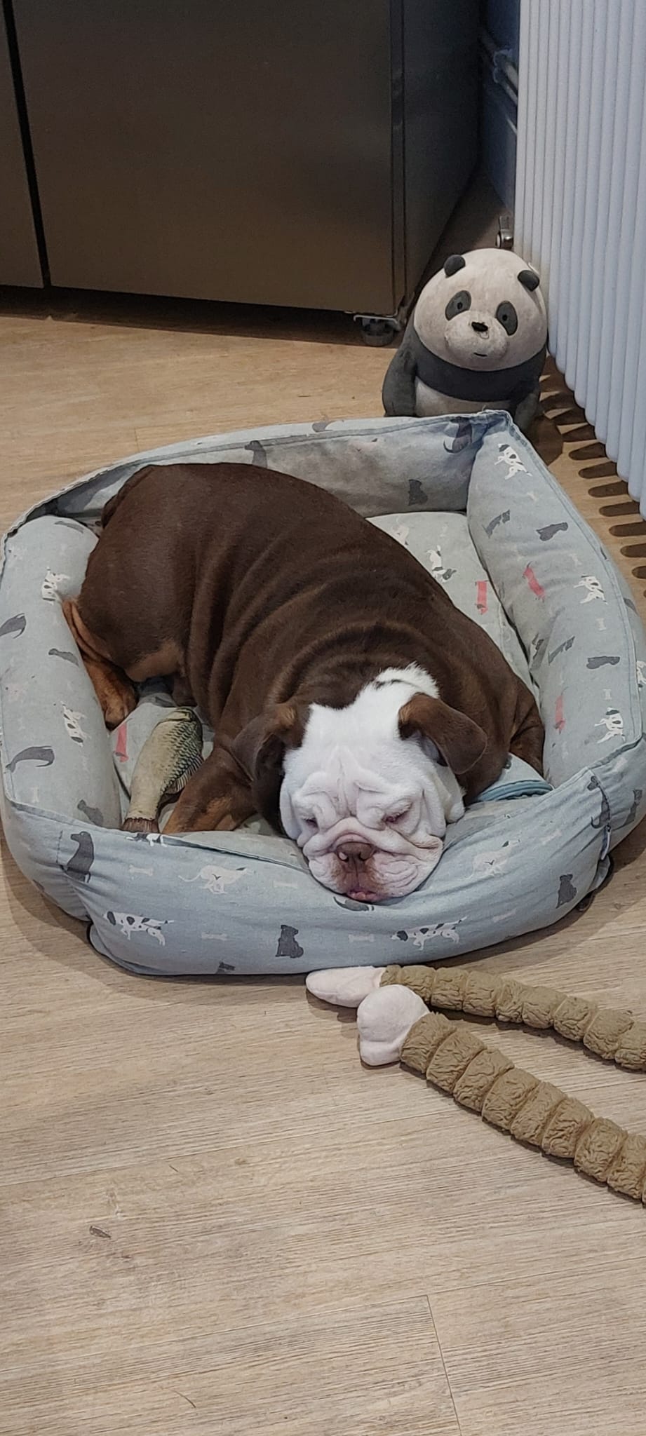 He did see a vet about 2 months ago when he developed cherry eye he was 17kg then the vet didn't say anything about his weight. Cheers Lennie I might have to have a look at his diet. It does say at s adult weight should be 24kg for him.