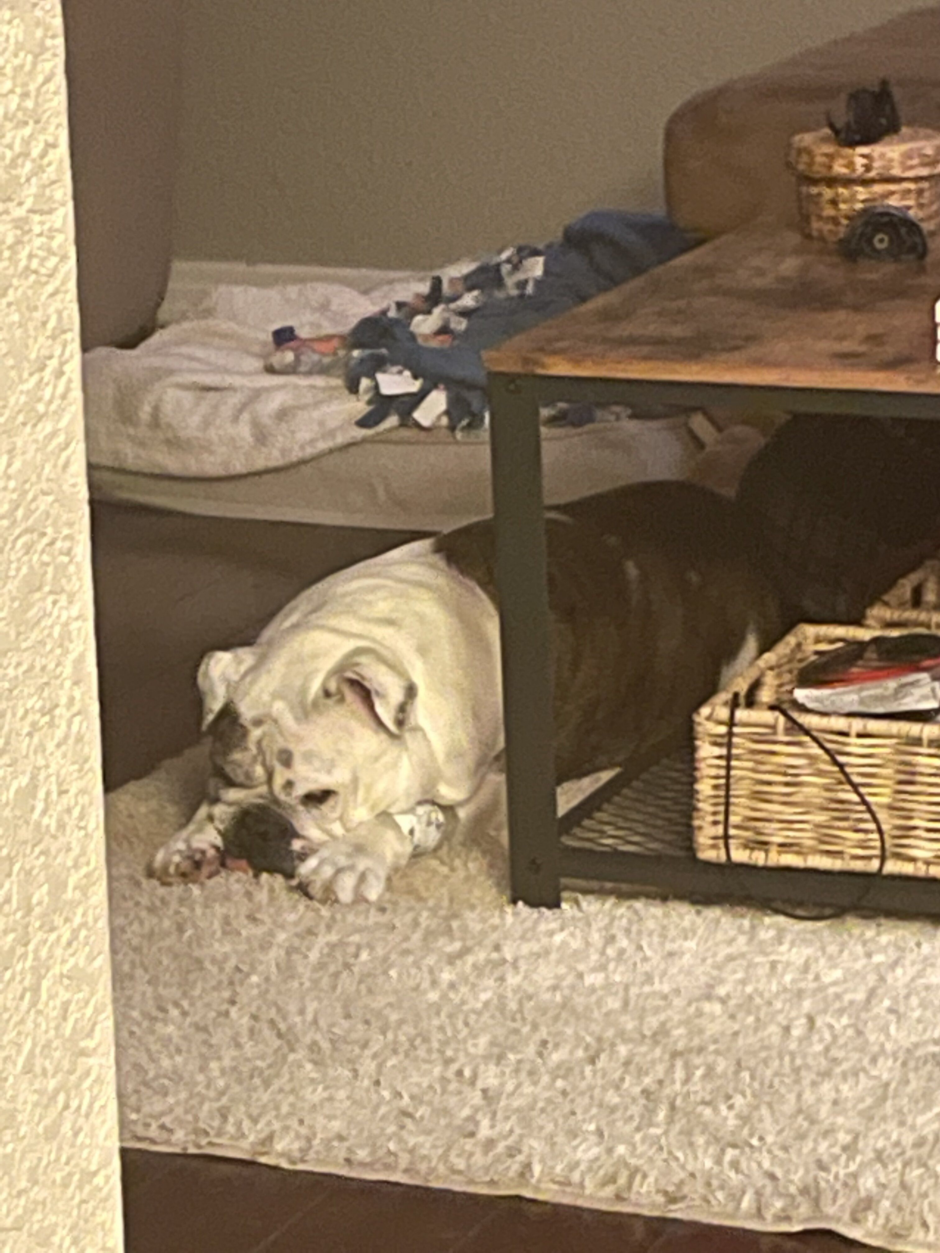 so my dog, Gertie, is we believe to be a 9 year old, going on 10, english bulldog. Tonight she is acting distressed when going to bed, not wanting to settle. When she did lay down she seemed fine until she shifted, when she moved (when laying down), especially when going to lay on her other side, she would let out awful yowls like she was in pain.