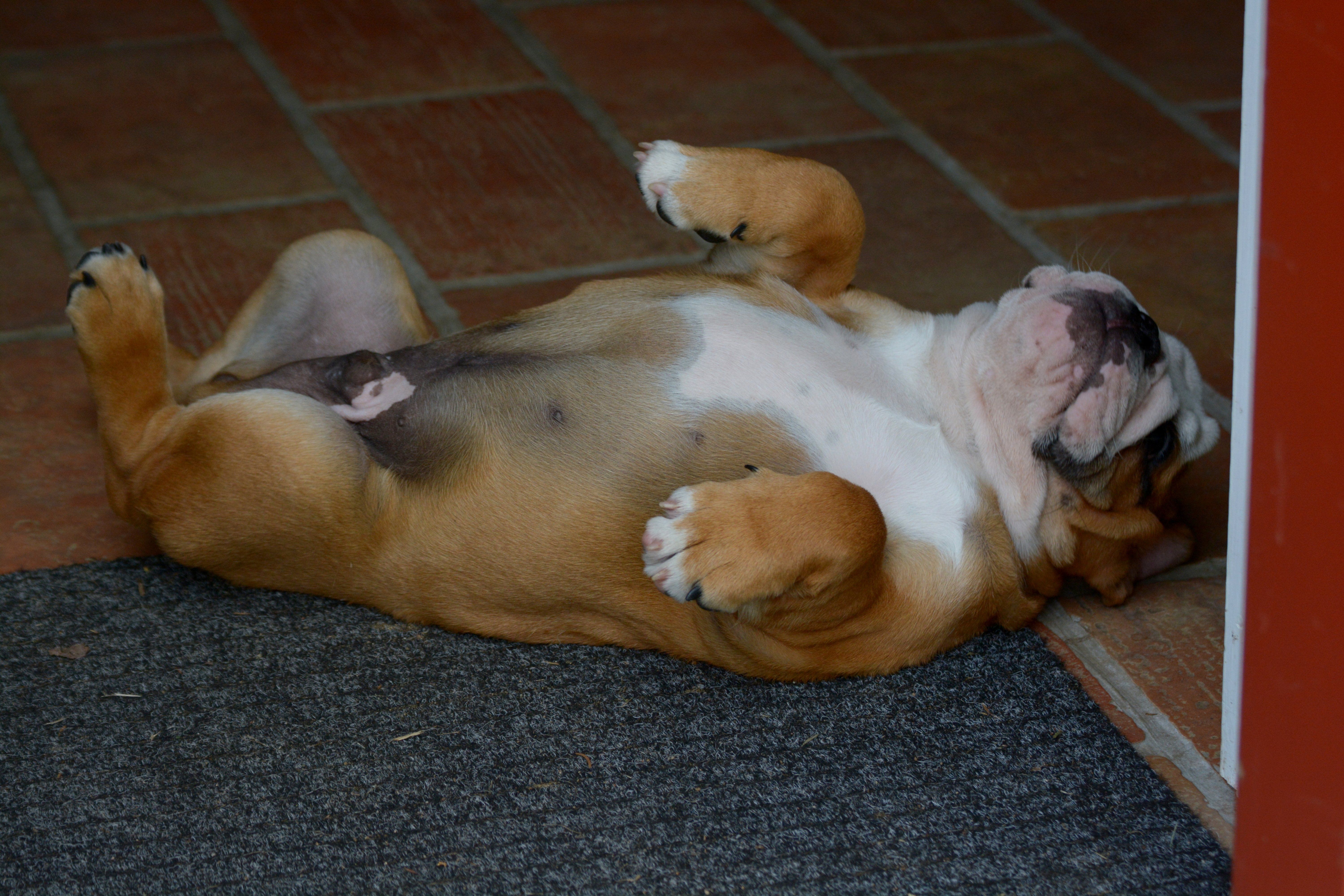 My Taisto has a peculiar trade...he is two days shy of 15 weeks and he can hold his pee for more than 8 hours and still then is not in a hurry....He just refuses to go out when my hubby wakes up in the morning to take the pups out. He'll just go all limp and on his back.... I don't know if should laugh or be worried...