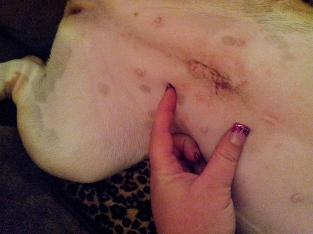 So Lola got spayed on saturday and her swelling of her teats is going down and today she is almost back to normal! However I check her everyday and make sure nothing is split open and today on the left of the incision I noticed a knot the size of about a golf ball has anyone else had this? Im wondering if it is just how she is healing but im not sure. Its not under the incision but off to the side.. Thanks!