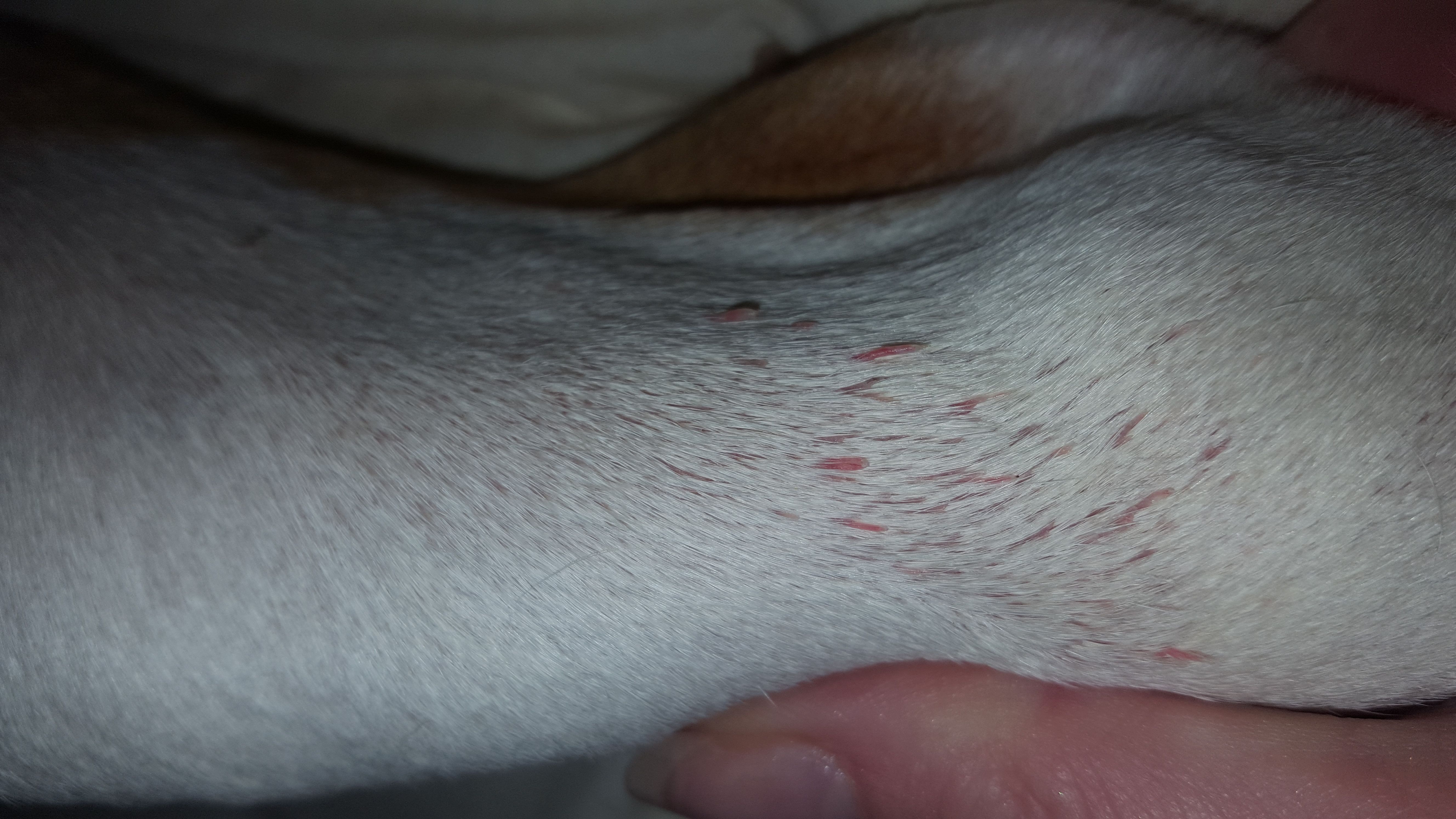 Has anyone seen this before. Its on the inside of his back leg. Not sure it its skin tags. It started off with just one a couple weeks ago but know theres loads. View attachment 111997
