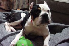 First, Drika is 2 Y.O. I cant say for certain but have a feeling she was BYB dog. She has had at least one litter, what appears to be a bad ear crop, and the concern that bring me here: IMO, and the opinion of someone with some knowledge with EBDs, there was a DIY type attempt at a tail dock. The concern, which was shared by this person I spoke with that has more knowledge on the breed, is that this either is now or could be an issue in the future.