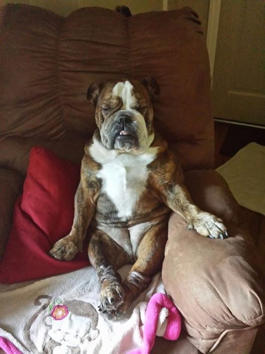 I can just hear her saying "oohhmmmmm" This made me bust out laughing at work. LOVE!This is Pebbles, our 4 year old female bully. View attachment 75959