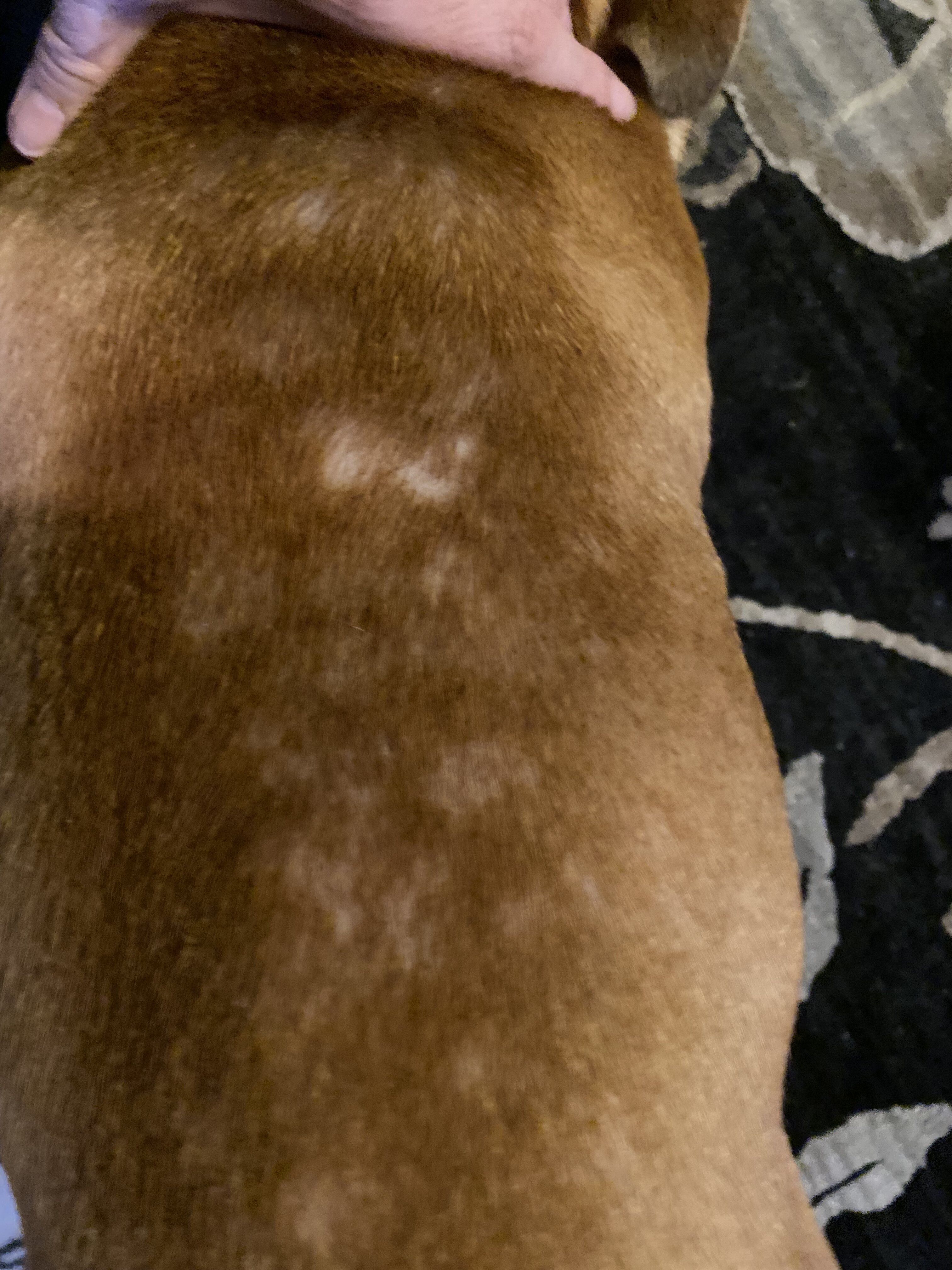 Seeking advice: First time owner of a fixed male, pacific bulldog. For over 6 months now (summer and winter) he has patches of hair loss. Vet said may have been a food allergy so we switched him to a raw pork diet, and he is also currently on 7.5 mg of Prednisone. It has been several months and no real changes.