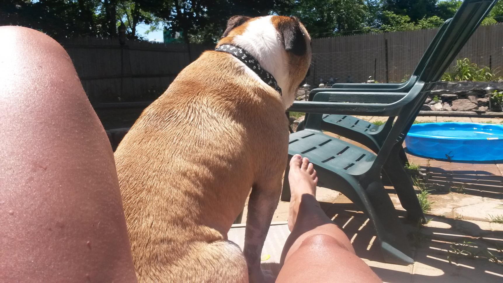 I'm covered in hair when she's done laying with me. She'll lay there all day sunning herself with me. Her and brutus sat with me the other day, i was squished to one side of the chair. I have the same chair right next to the one i lay in but does anyone ever decide to sit there...of course not!OMG it's almost the same exact picture!! I swear sometimes I feel like I have a furry growth!!!