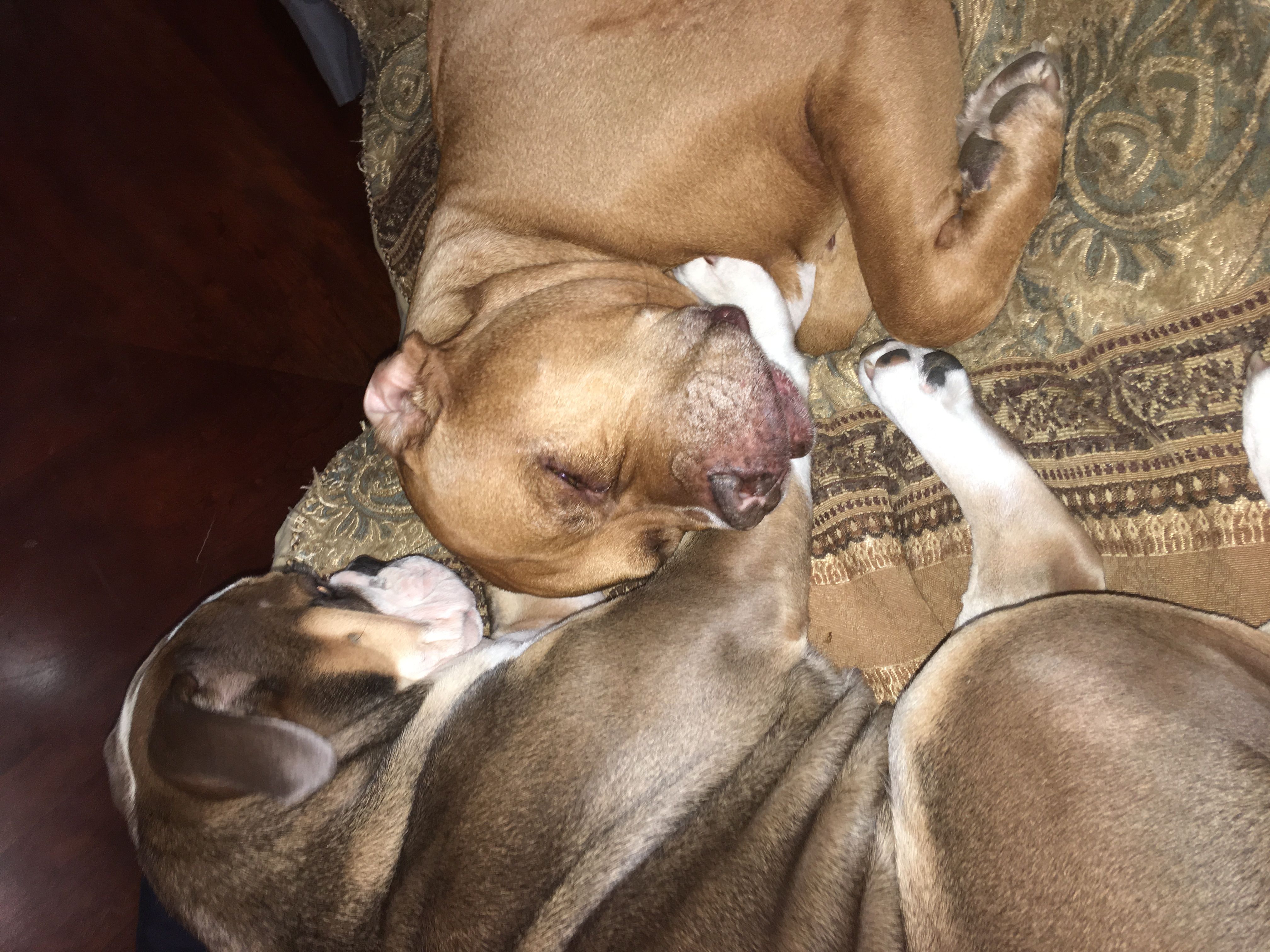 Louie terrorizes Jax all day but when he is tired, he will sometimes try to cuddle with Jax and Jax is like ummmm...get off me lol.