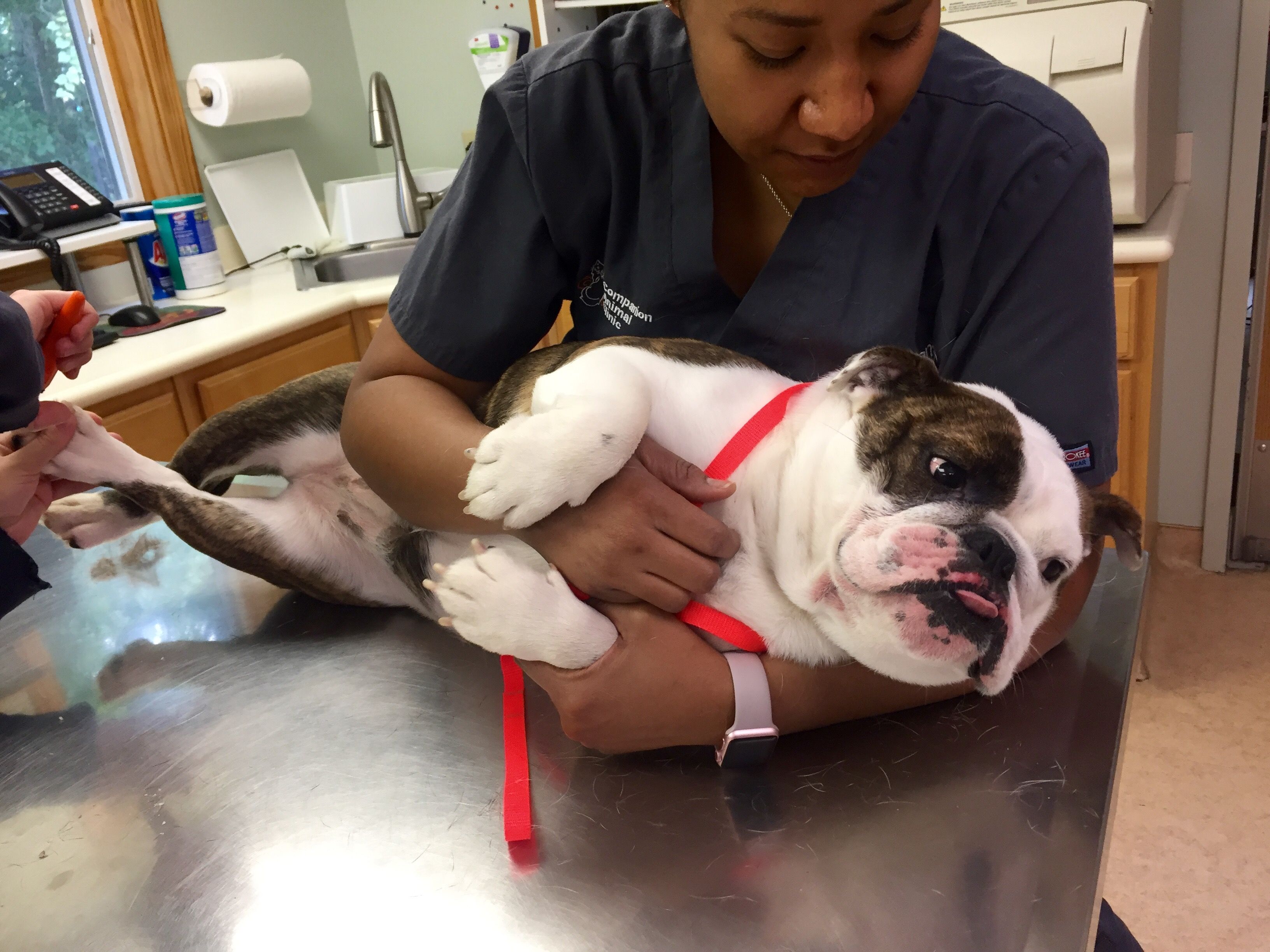 that's what makes me love them that much more.Bella got her nails trimmed at the vet today. They emailed me this pic saying "Mani/pedi time!"