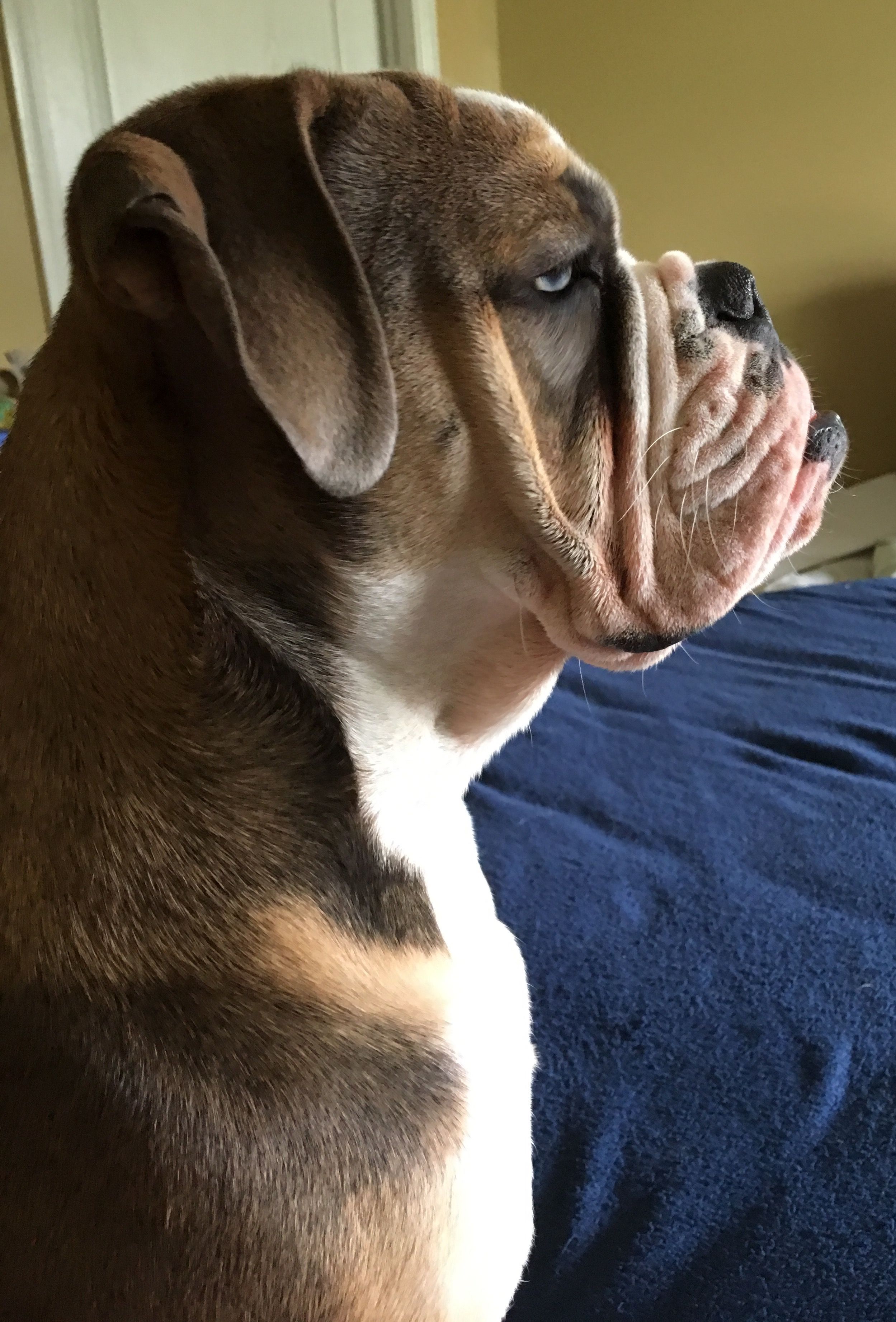 she is so pretty!!!! I just love her and I get the biggest kick out of her as shes just sitting there so pretty, with that bulldog face of hers, looken like a beauty queen letting us take in all her beauty..... , but ... tee hee,, she is a bulldog and though they ARE beautiful, well, they're bulldogs... lol and she portrays all their silliness, and wrinkly selves with elegance... I love her. I hope you get what I'm saying... she just always makes me laugh cause she has no idea of what silly beauties they are.... and I love her for that..