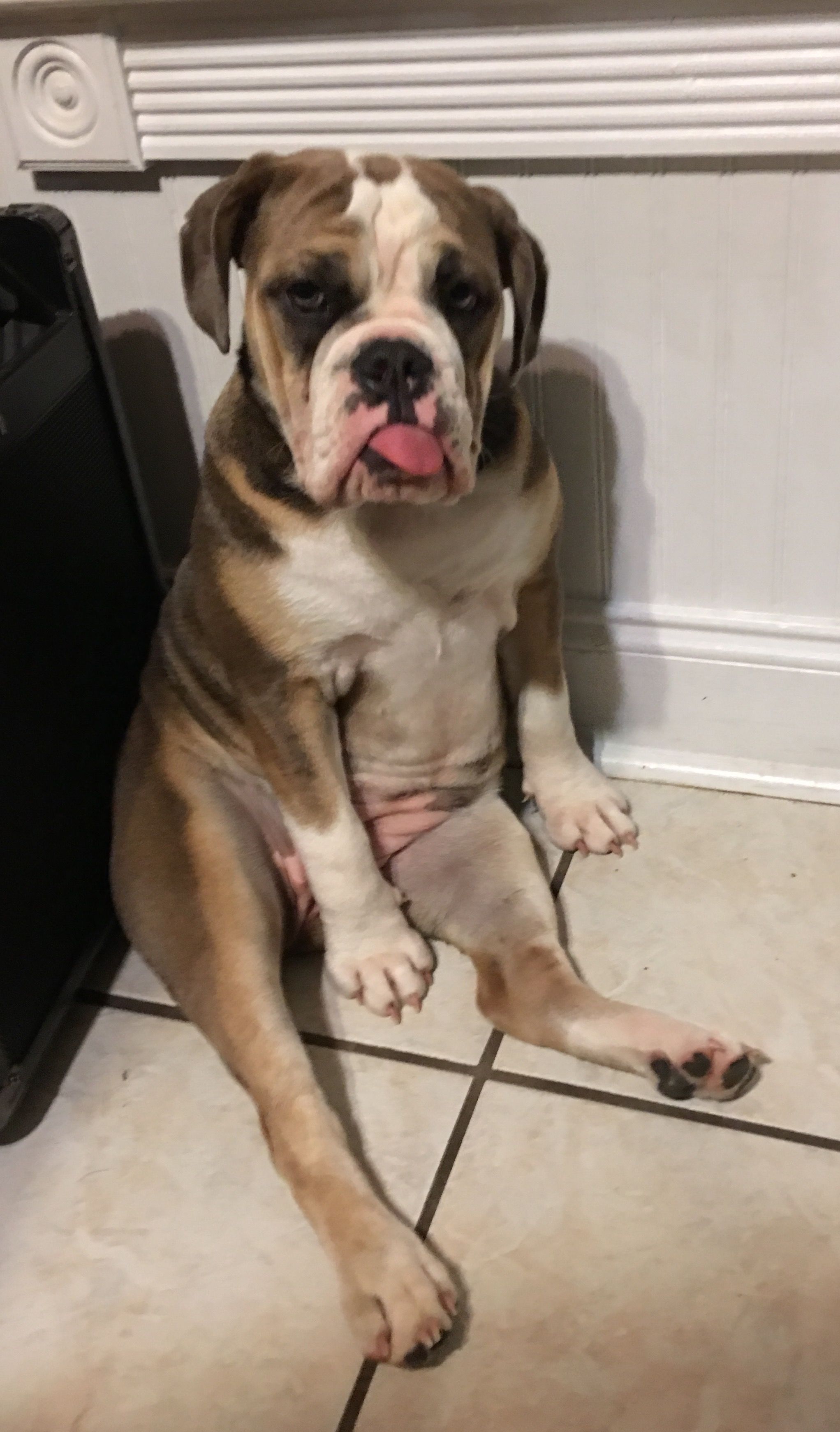 Look at that mug! Hahahaha...she is a cutie. I am so curious as to how much Louie is going to weigh. Both parents are show dogs so within the AKC standards but his grandfather is over 70 pounds. The breeders don't think he will be in the 70 pound range though.