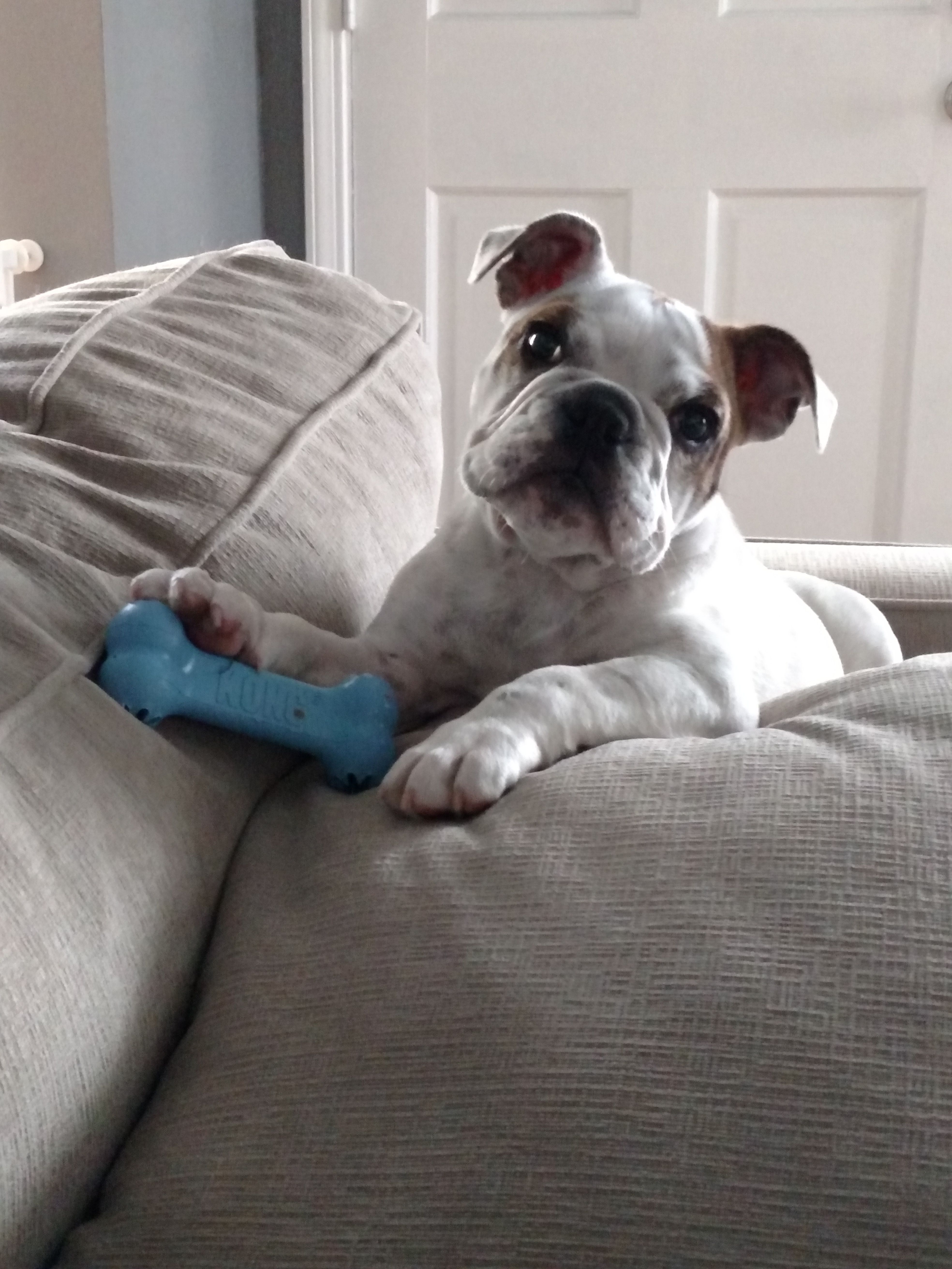 What are your favorite toys for your bulldog? Any suggestions on Kong toys? We like to freeze peanut butter in them when she has to go to bed, but she's already destroying the puppy Kongs and she's only 3 months old.