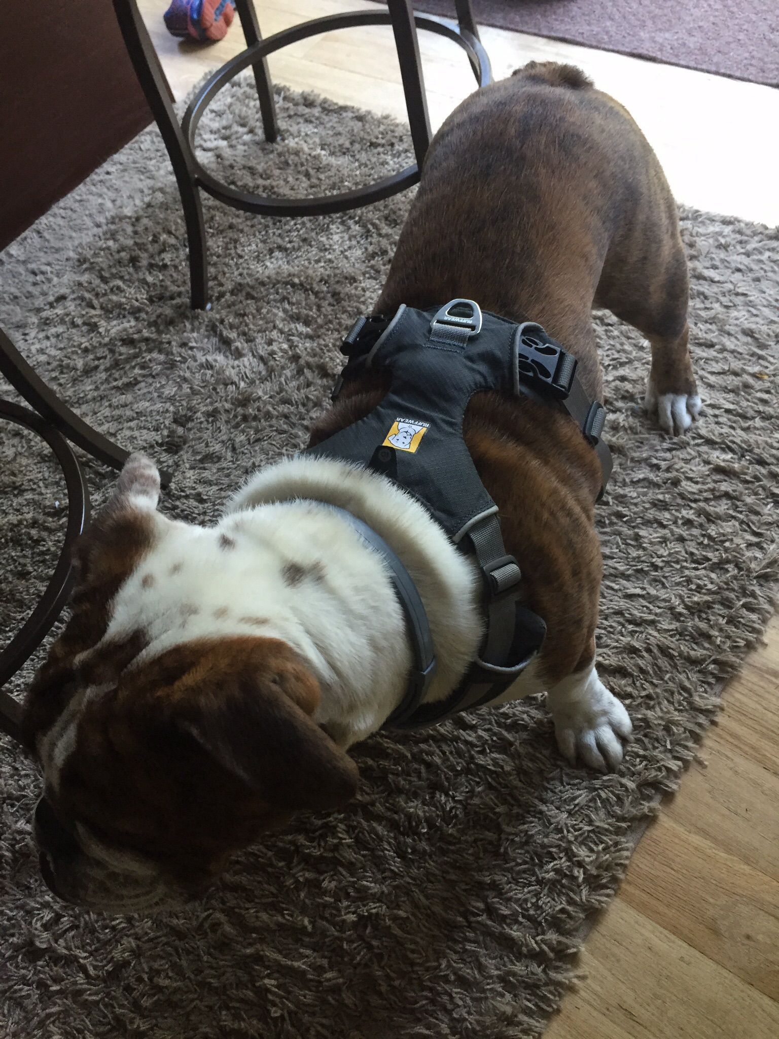 Hi everyone! We got his new harness yesterday and today he got to wear it and i have to share lol.