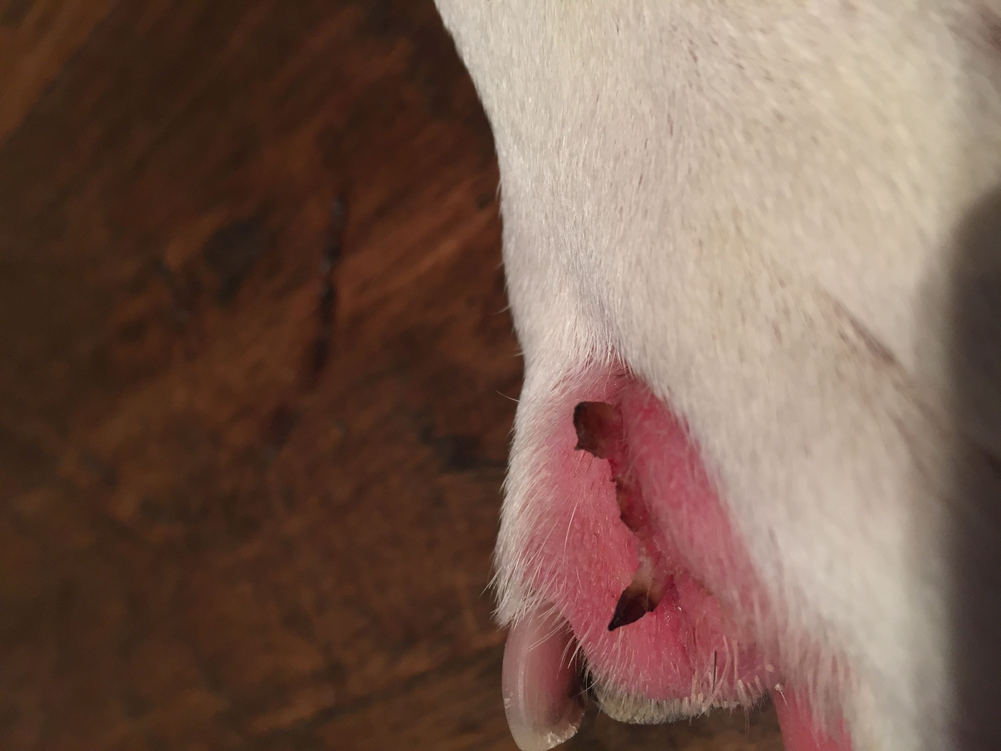 Thank you all so much. I have been googling my head off. There are some similar pictures, and the hyperkeratosis is one. Thing is, this growth isnāt āhardā, itās very soft. There are also pics of skin cancer tumors, and these look similar too. The growth itself doesnāt seem to bother him, rather itās The inflammation surrounding that is tender. He lets me treat it though. And look - over the last two days, two of the āfrondsā (?) have fallen off!! No idea where they went... in the snow? In the house?!!! Maybe itās warts....???? So odd. I just donāt know.