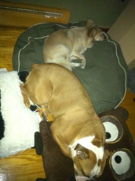 But I feel bad because rocks is bored all day...I leave him with my other munchkin daisy (Pom/chi) and he always gets into something I have to spend 30 mins before work making sure nothing is left out for him to chew...I'm afraid If I leave him his deer antler or a chew toy that he will swallow it and chock...he doesn't know when to stop...he chews and eats EVERYTHING....