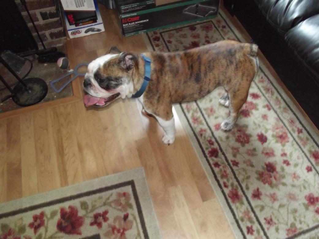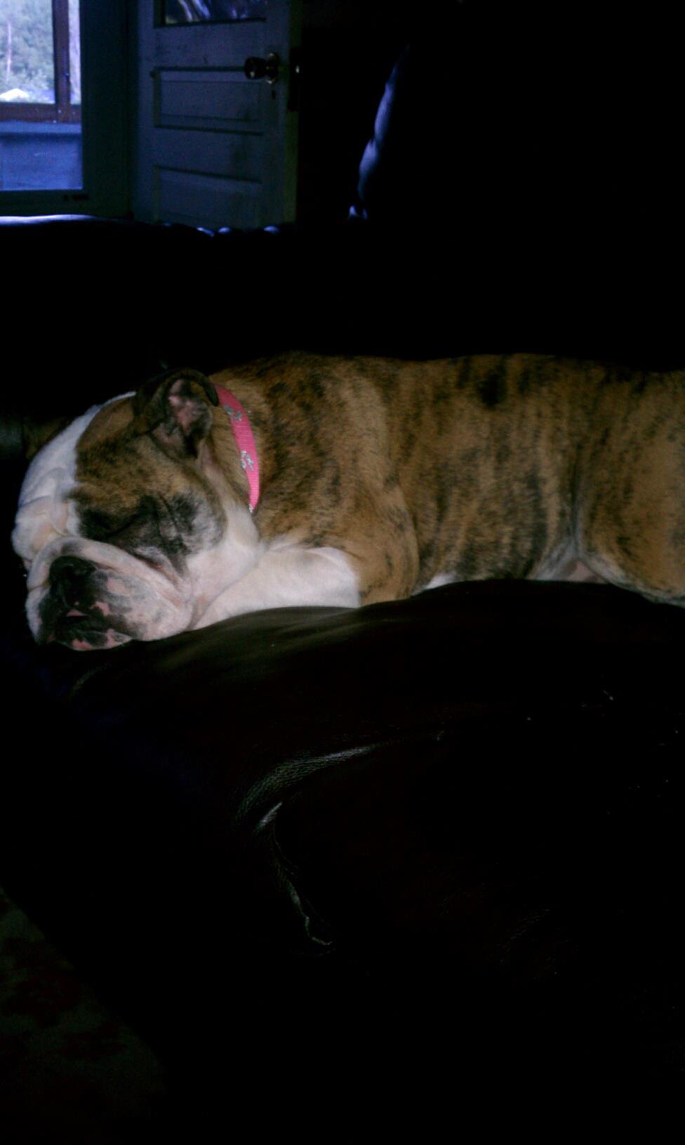 Hello everyone! I am very excited to be owned by my 14-month-old bully Zoey. She has been such a blessing to us in the short week we have had her. I am still stunned at how well behaved she is. I keep waiting for her to eat a shoe or potty in the house! This forum has been incredibly helpful to me as I learn my way around the breed. Thank you to all who contribute to make this THE site for bully info! Here is a pic of my little couch potato!