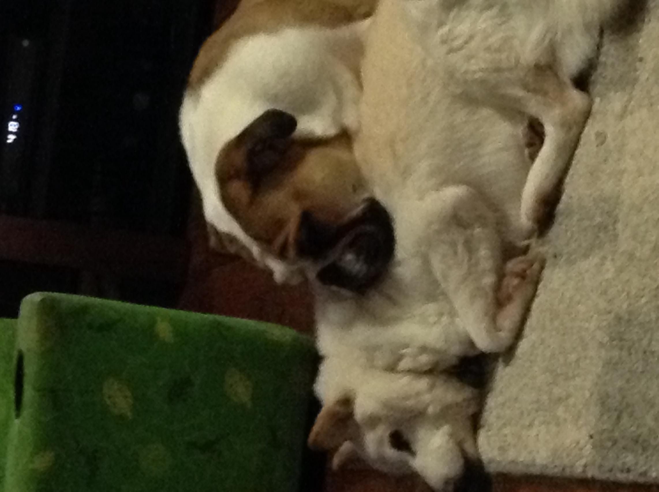 Brie likes to put her chin on everything...not sure if it is a 'dominant' thing or just a thing she does. Normally she stands over Hunter, shoves her butt in his face - and I mean shoves it- lol she growls n bites his neck n pushes him down. Eventually he shrieks n I may have to redirect her. Poor Hunter is 14 1/2 years old n just doesn't know how to deal w a rambunctious puppy. Today however, she was gentle n just kept putting her chin on him