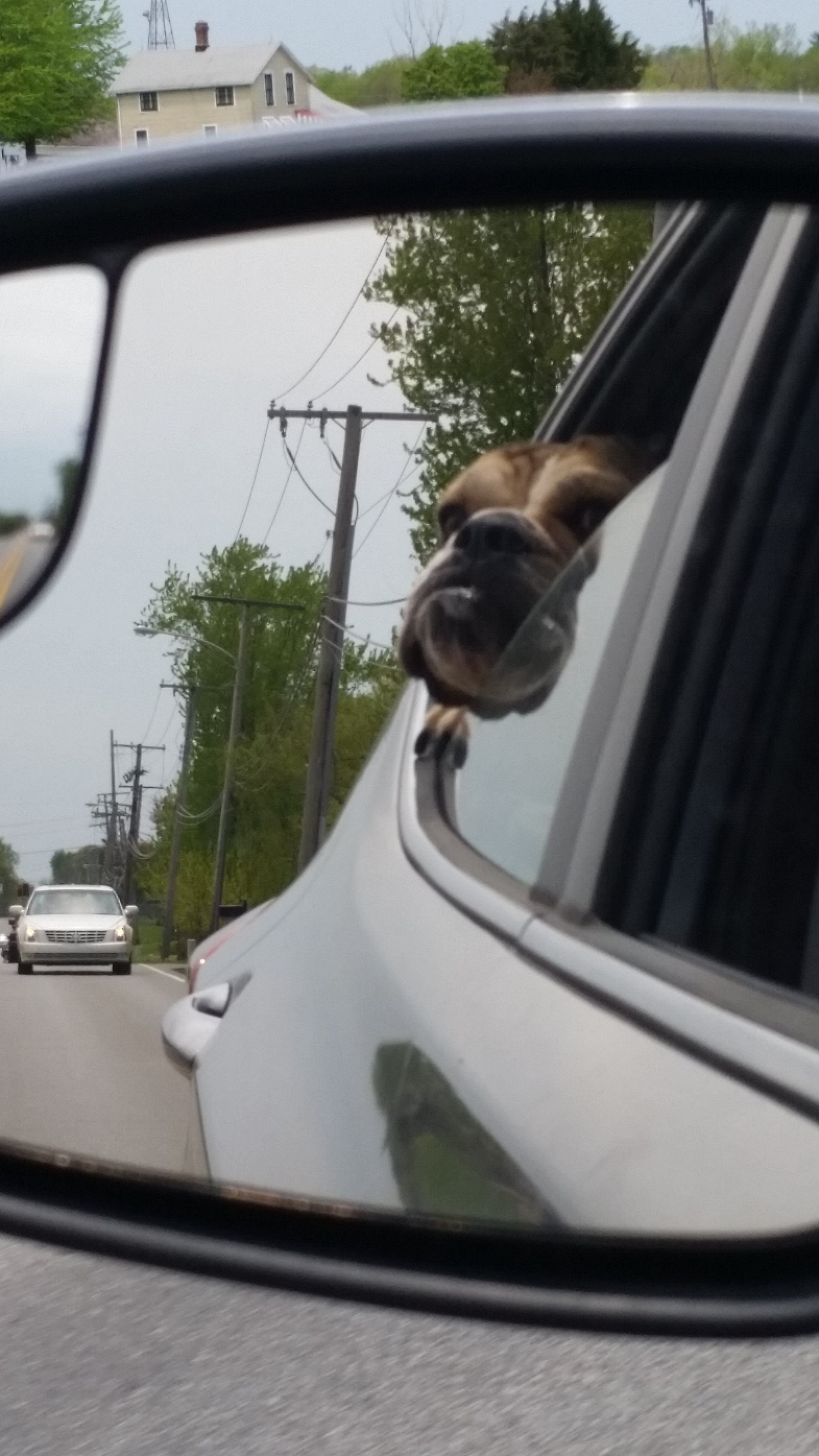 Good job Chunky. The dog we currently have, Bentley, a King Charles Cavalier Spaniel, loves the car. I get the stinkeye from him every time I go out and come back home having not taken him for a ride. Each day is just another day to go for a ride for him. Now he doesnt really crash after a ride, but will if you just come in the house, he will stay outside on his own a roam abit and do his business after a ride. He likes walks too, again, I get the stinkeye every morning after coming back from my morning walk and didnt take him. When riding in the car tho, he has to be in the front seat, gets mad if someone else is sitting in "his chair" and the window has to be all the way down so he can stand up on the edge of the door and get his head as far out the window as possible. First time he did it, he didnt have a leash on and I nearly crashed the van trying to get a hold of his collar to drag him back in. Now I have a leash on him and have to drive one handed and hold onto the leash, shortened of course, while he hangs out the window. I can go up to 80km/hr like this (about 50m/hr) before its too windy and he ducks back in. But once it town, he's out the window full time. People love to point and wave as we go by, And, yes, they him at the drive thru's too. I have to go to town later, so I'll try to remember to get a shot of him window surfing today. Love the shot of Chunky standing at the back window.