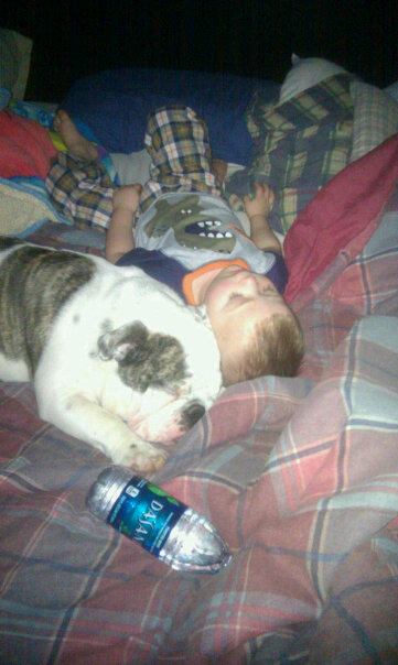 The other night we were in bed and I looked over at my little boy and he had his head on Coop using him as a pillow. Later that night Dayton woke up crabbing and complaining well Coop took his spot and I mean Coop took his spot. Head on his pillow and sprawled out! He thinks he has to be right on top of you at bedtime. I usually end up picking tubby up and moving him to the bottom of the bed!
