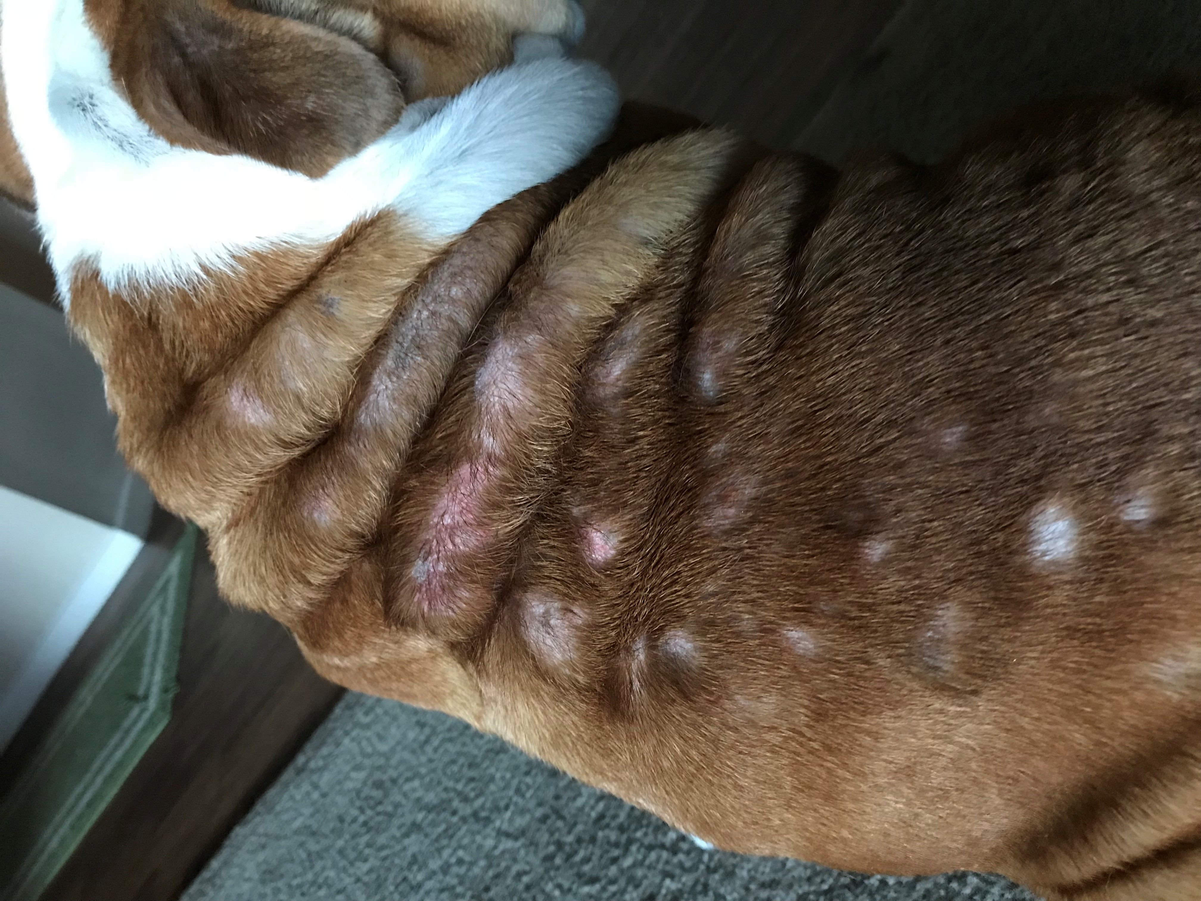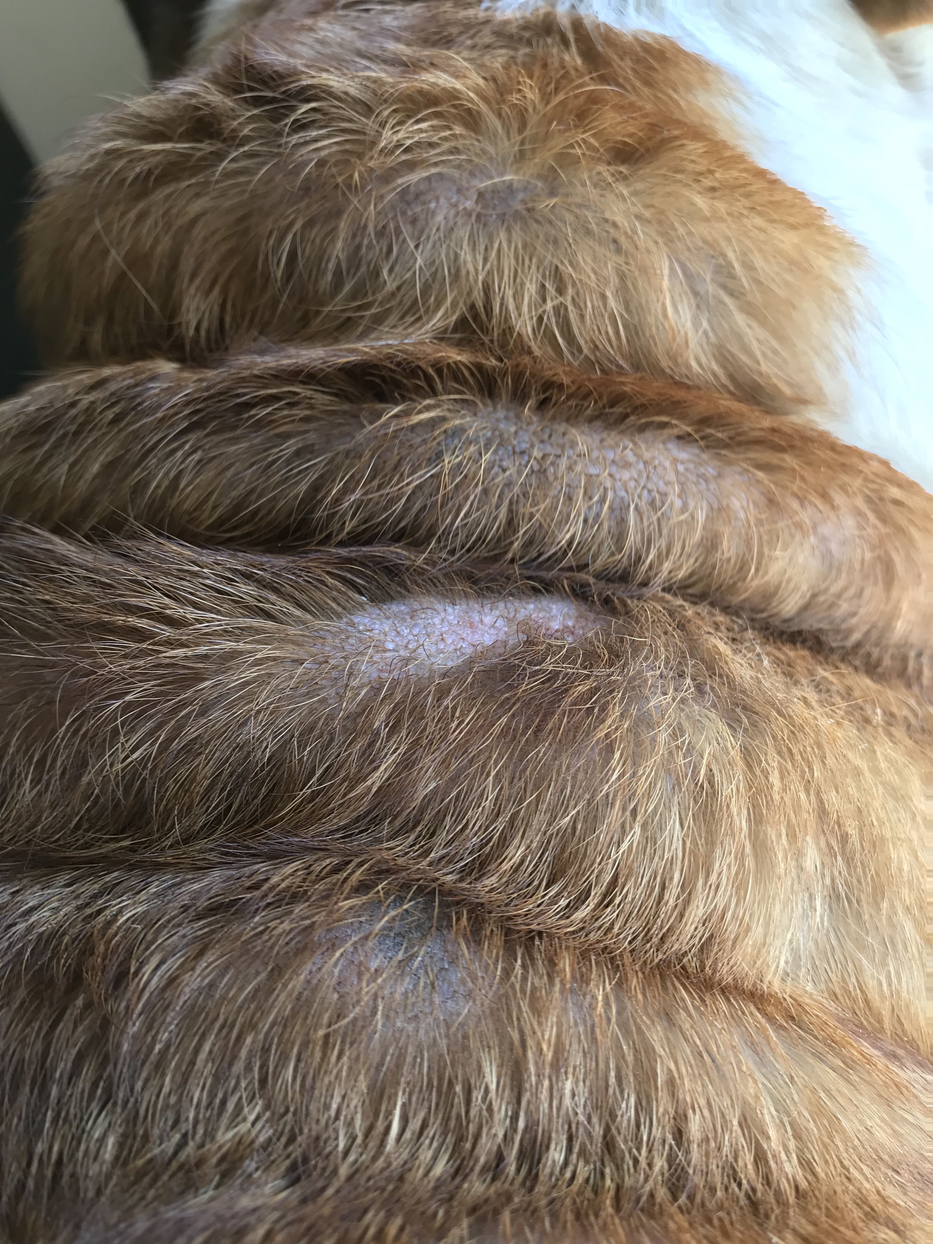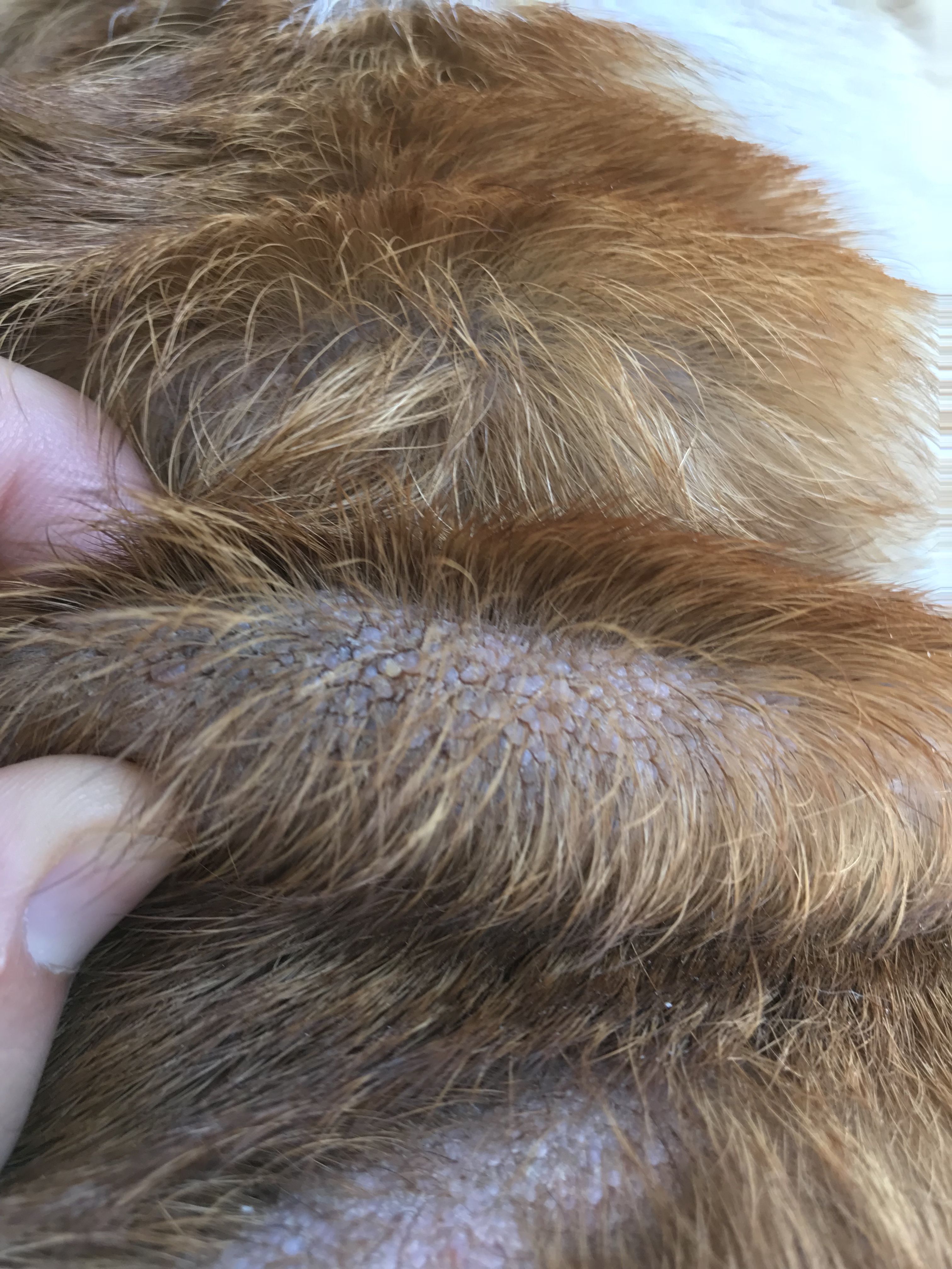 My poor Lincoln, who is 2.5 years old, has something going on with his skin. I can describe the spots as crusty/dry and scaly (see photos). They don't seem to bother him all that much and are not red/itchy, but they are causing hair loss and excessive shedding.