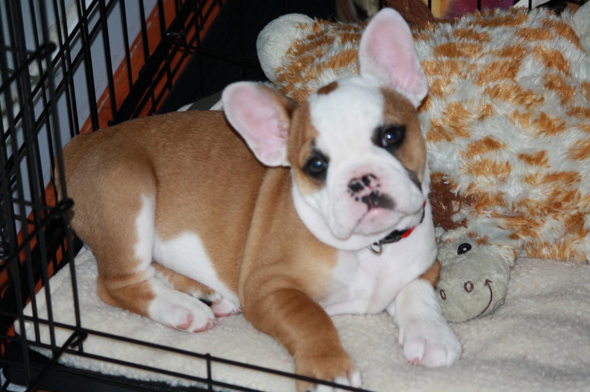 Omg how freaking cute is that! !!! He looks like a bully bunny!!!! Ahh can't wait to see what he looks like grown upChance is a Frenglish half english and half french BulldogView attachment 71006