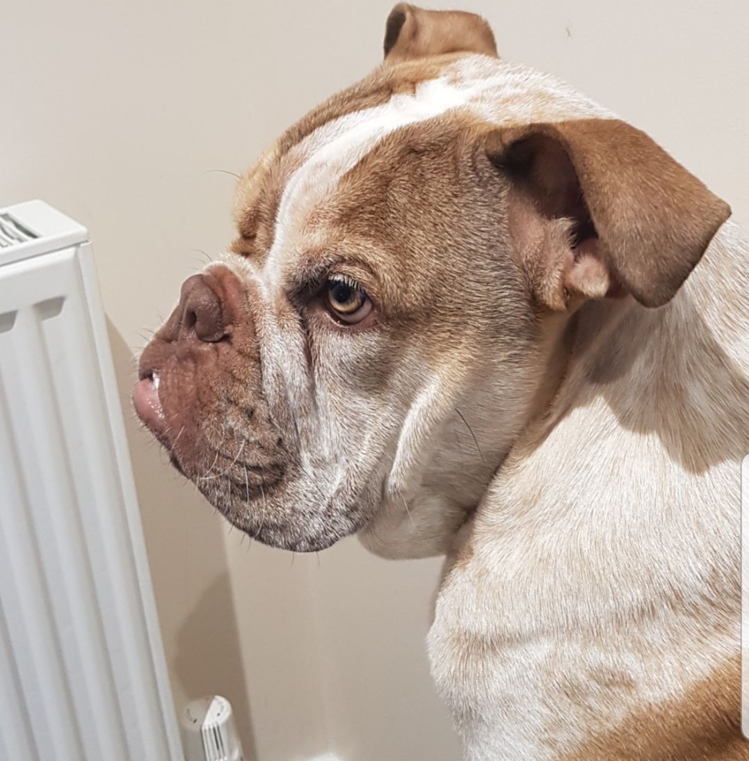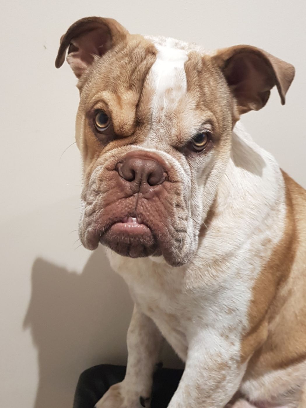 I love his bulldog glare ! If the diarrhea continues, even if he doesn't show any parasites it's still worth doing the febendazole since the tests can sometimes falsely show negative for giardia.