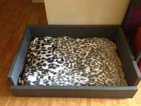 We plan on maybe adding their names or paw prints painted on there, but are still debating on it. It was cheap too! For all supplies (wood, paint, brushes, wood screws, fasteners) it was only $55!!! The bed would cost some too, but we used stuff we already had for that and we already had a power tool. I think the supplies would cost less too if we had used the pallet idea, or if we got the dimensions correct lol!
