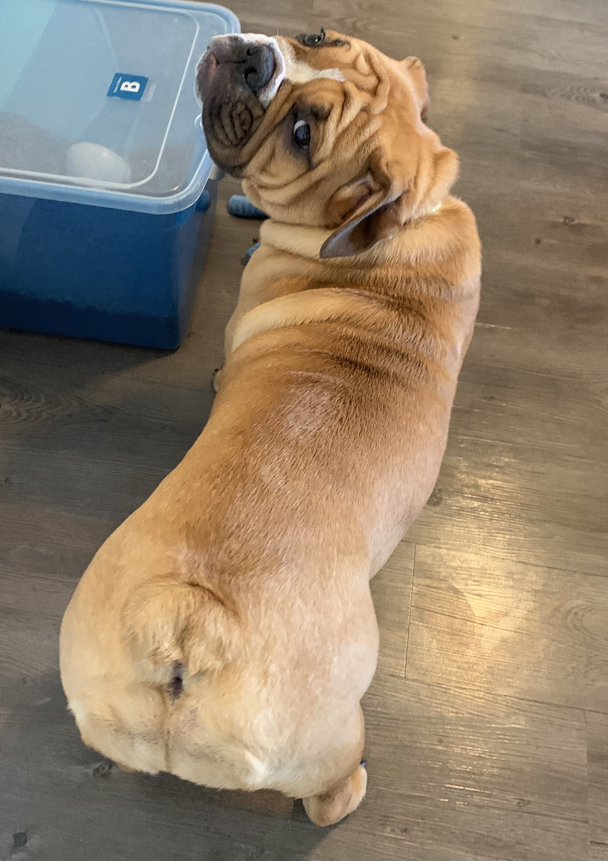 Side note: her paws are huge, her coat is a little thicker/softer than our other, her ears sit a bit different, her underbite is smaller.