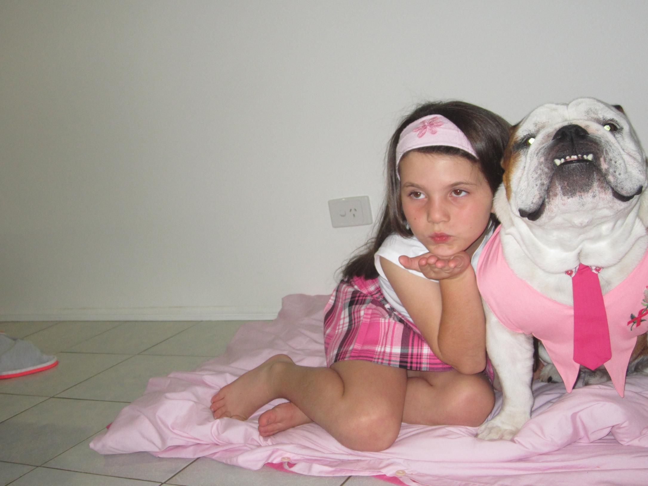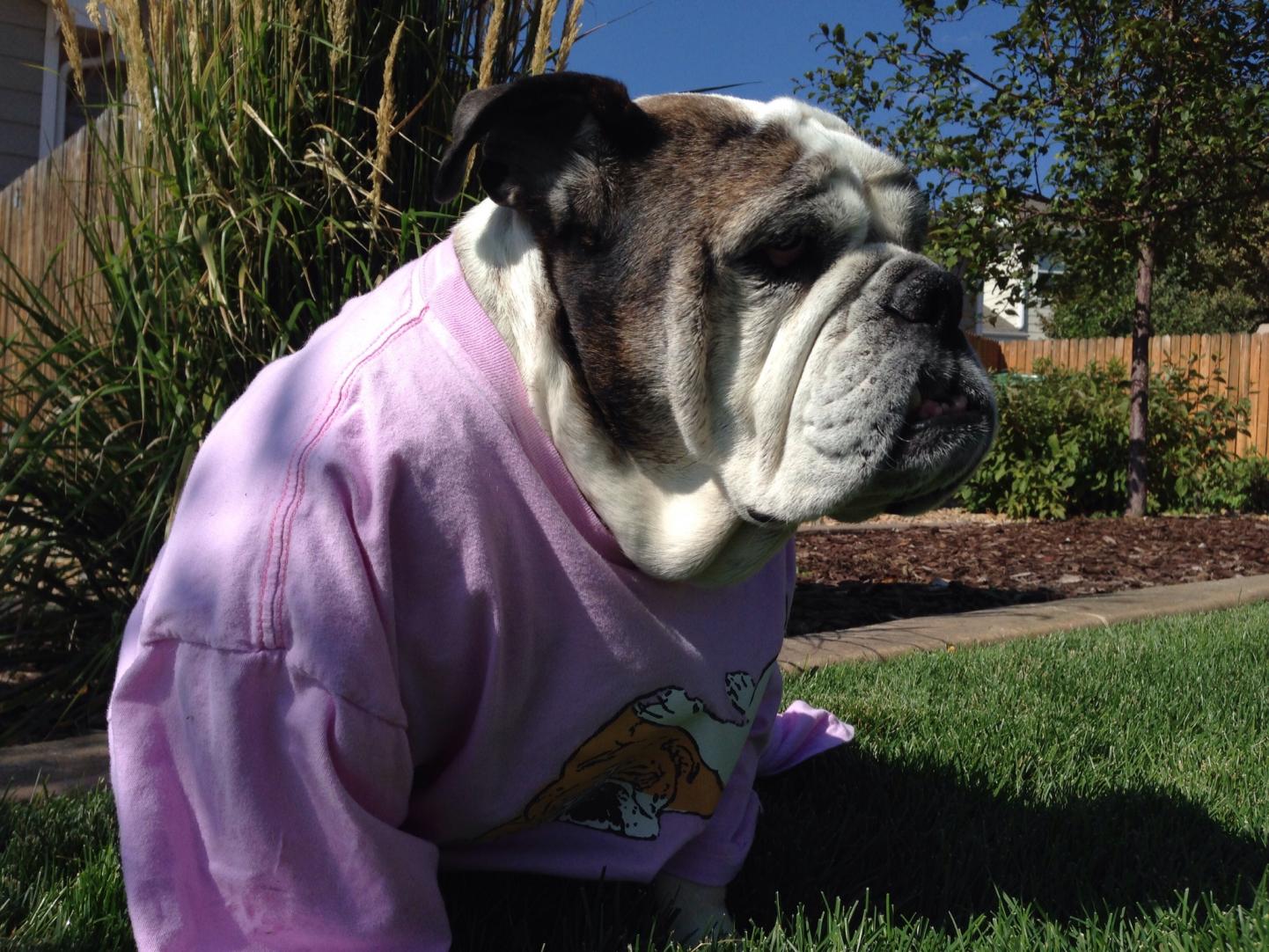 Are you trying to influence the votes by dressing Sally in a shirt that has my mom's grand fur babies on it?
