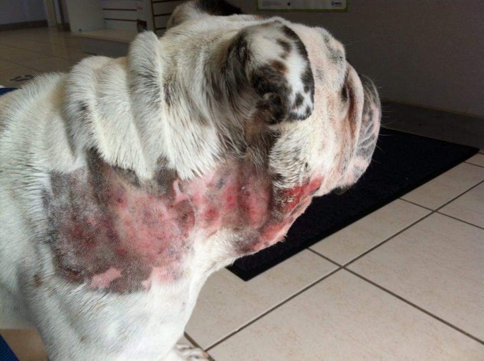 Thanks soo much for all of the advice. Went to the vet first thing this morning. Kyle had no problem telling the vet just how crummy he felt. He was so sweet, the vet even took our office visit charge off. He is now on antibiotics, anti-inflammatory medication, and has been shaved. He looks silly but he is almost acting like himself again.