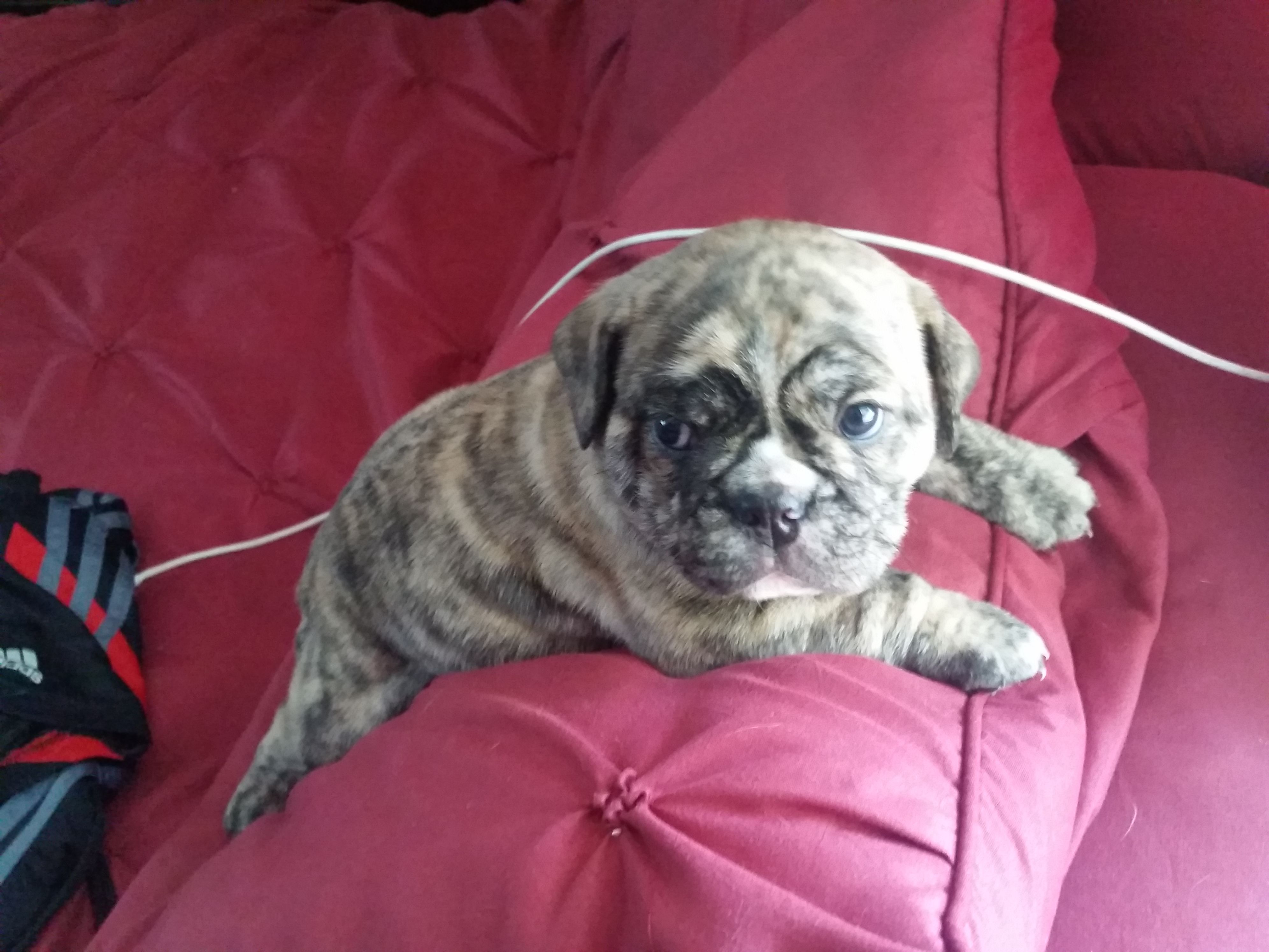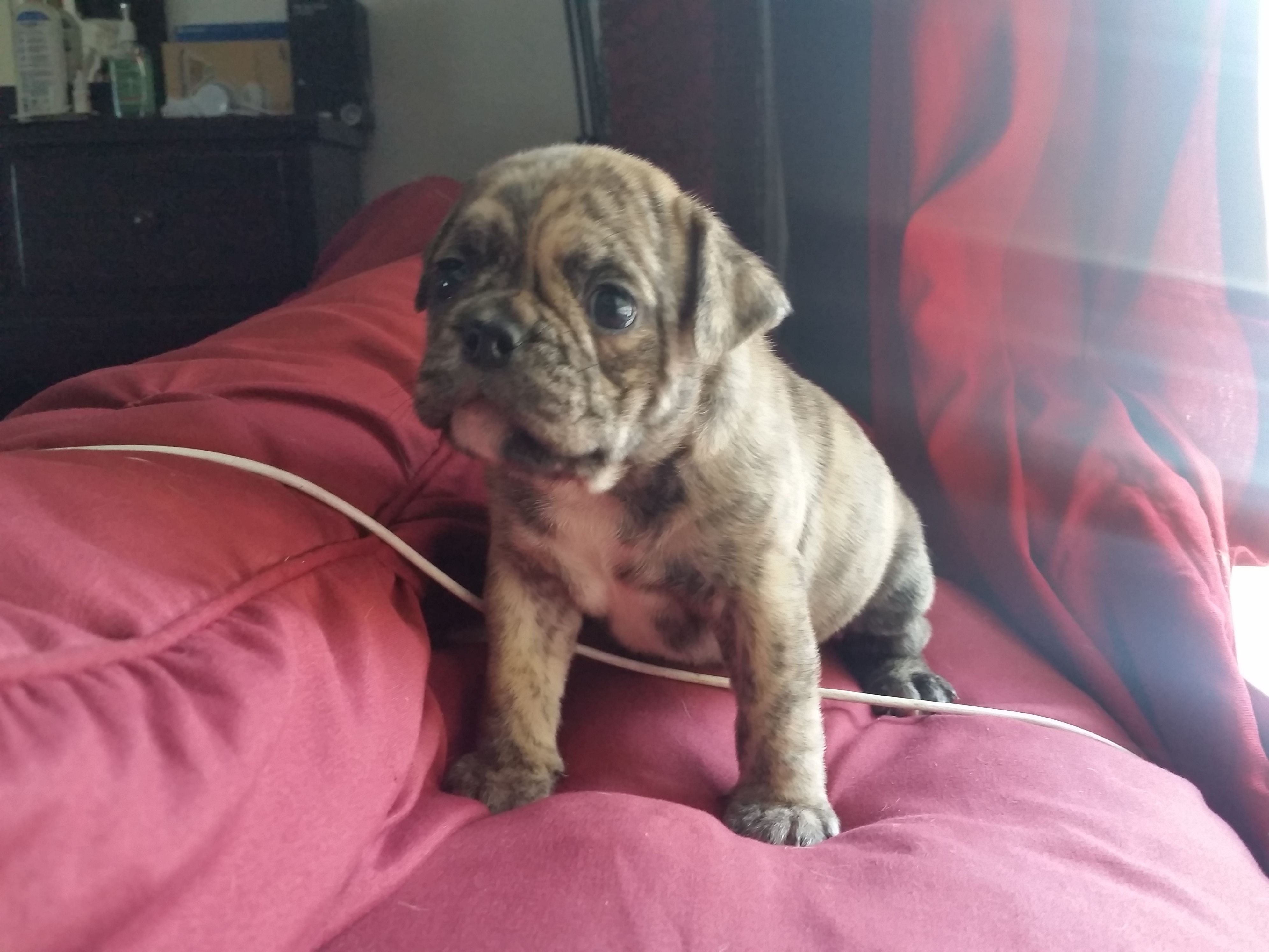 3/4 EBD and 1/4 Pug. I love the mixture of the breeds so much