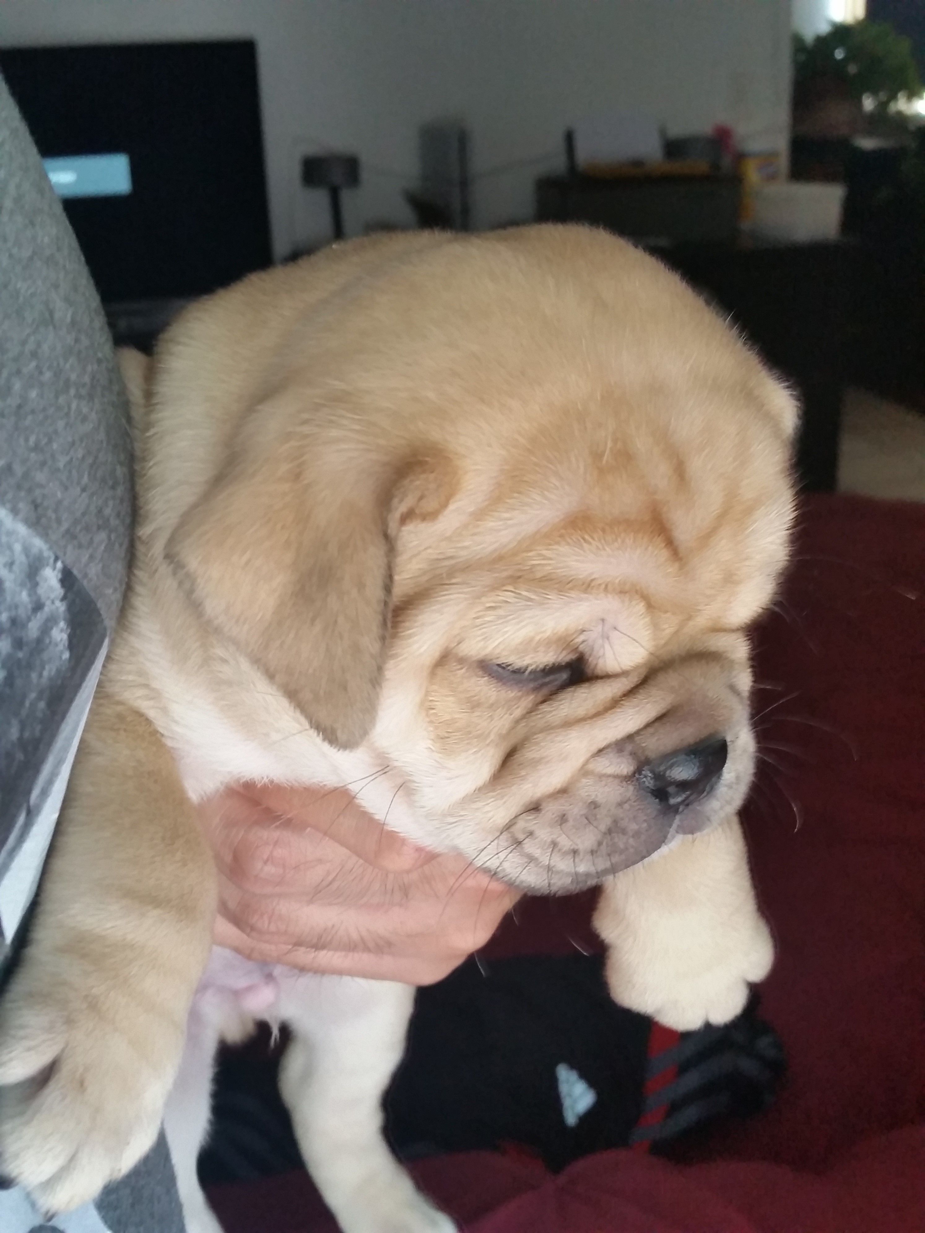 They are beautiful two beautiful breeds in one, it is so hard to part with puppies when my pug had a litter I couldn't part with them so had five of them she had a litter of seven but only three survived sadly