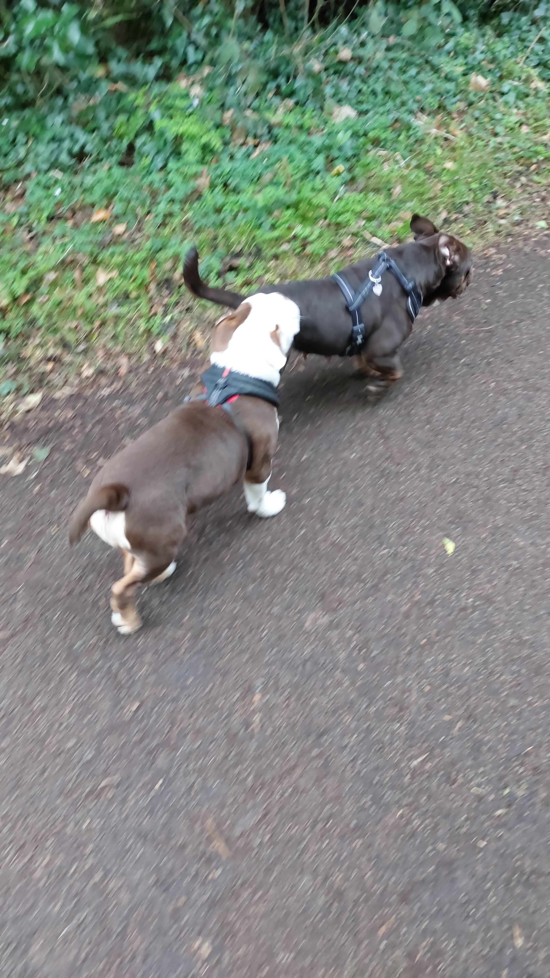 Hello sorry not at home at moment I only got these photos about month ago will send tomorrowNoramlly 1 cup of food three times a day is all they should get.... if feeding both dry and wet you need to make it even becasue at 6 months old 56lbs seems pretty large.. can you get a picture from above so we can see his waist.
