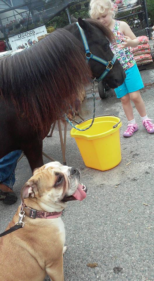 Also this past weekend I took her and the girls to a small pet event near my house. She got to meet a pony friend and a few other dogs and did well. She was hesitant at first with the pony but they touched noses and then was ok. We still have to work on her leash skills around other dogs, it's a requirement for the CGC test that she remains calm so working on that. Here are some pics! She is starting to fill out a lot more too.