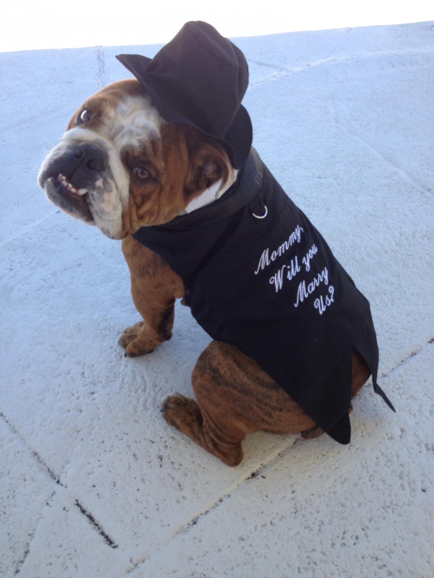 View attachment 59644View attachment 59642View attachment 59645View attachment 59643With his permission, Matt ok'd posting pics of Bogey modeling the tuxedo I embroidered for Rocco for the BIG proposal! For all involved in the planning, he has decided to do this the Saturday after Thanksgiving ( I am not sure I can wait that long!!)