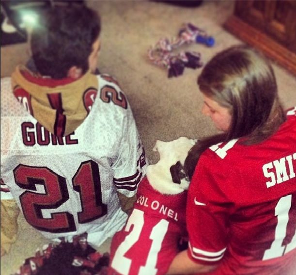 Colonel Mustard is 15 weeks old, and already a 49er fan! This Sunday we will be rooting for the Broncos with the rest of our state (Colorado), in the hopes that those Seahawks get what's coming to them!