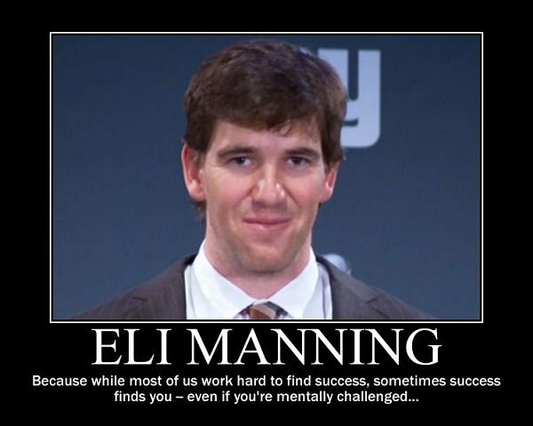 Don't go taking credit for Eli's deer in headlights look, he rides the short bus all on his own without assistance from silly Pat's fans................this is all I got for you