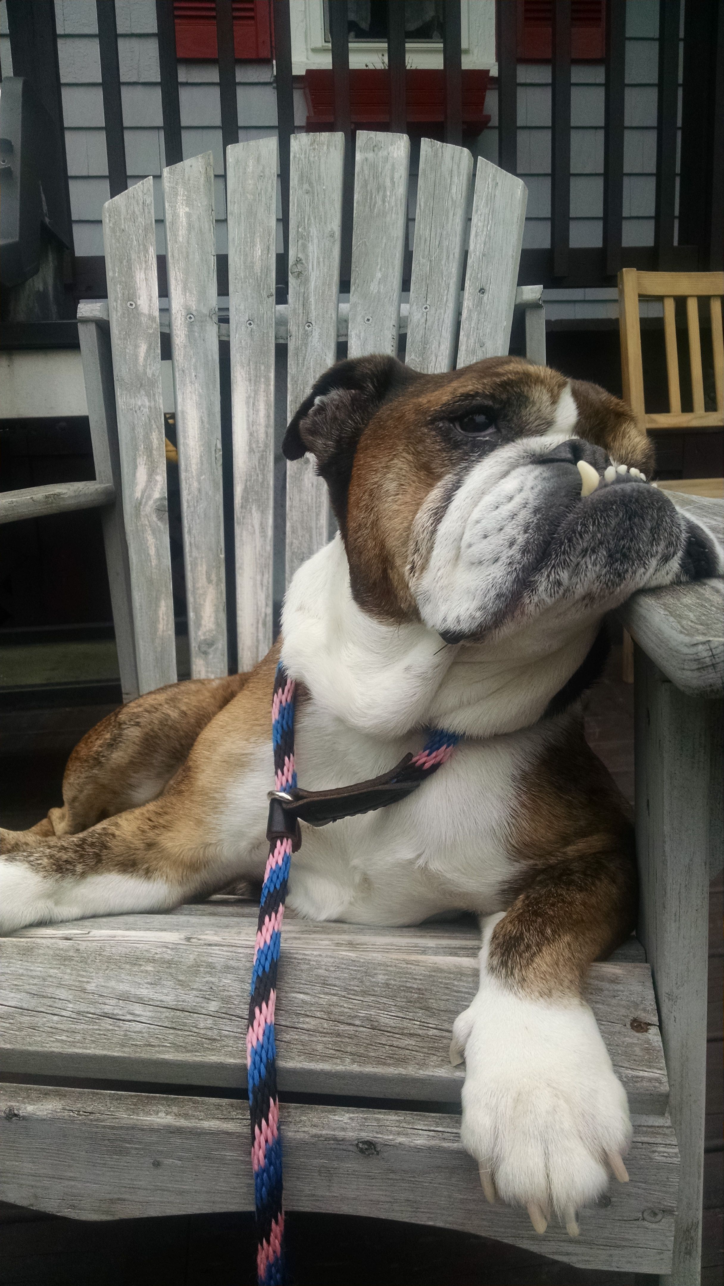 This easy-going gal is also patient and amenable to upkeep (baths, nail clipping, ear wiping...even vet visits!) Foxie is also a curious girl who prefers people watching to napping wherever she has opportunity! Foxie also loves to play fetch with her humans, and a good game of tug of war with her rope toys. Those chompers also enjoy a workout with antlers and and non-digestible nylabones. In true bully fashion, Foxie will sit on command...in time!