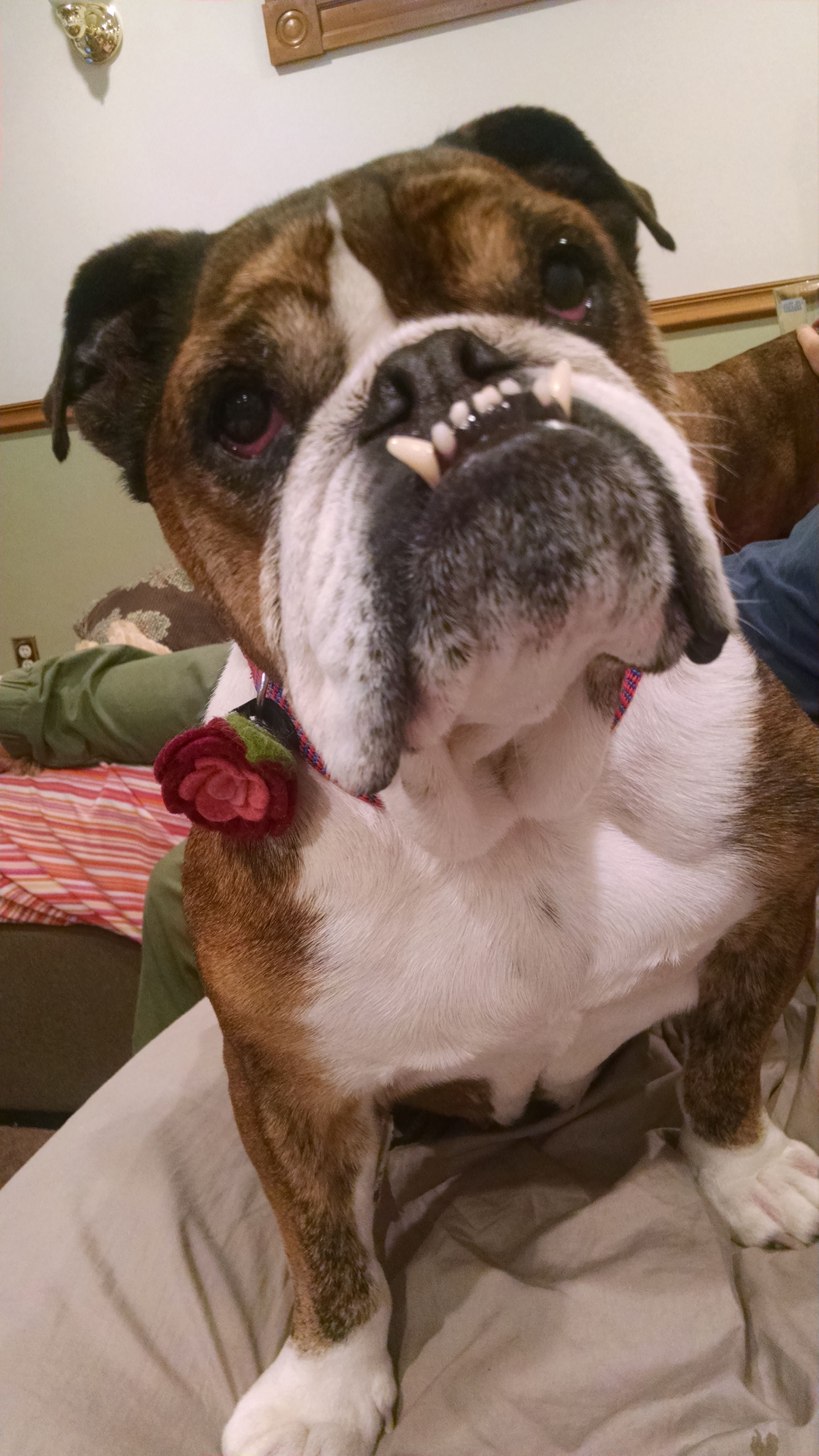 Foxie is a friend to humans of all ages. Just keep an eye on those adorable and protruding teeth. She does adore affection from everyone but doesn't demand it. Her beautiful face gets her a lot of attention from strangers and she eats it up.