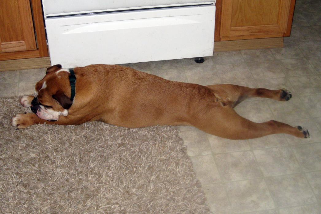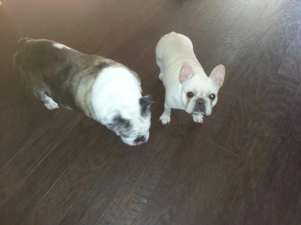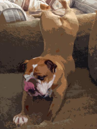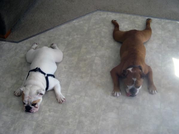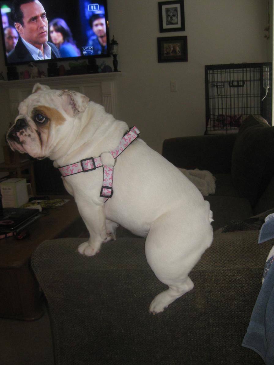 My favorite is the white bully with the pink sponge rollers laying on the couch with the muffins. That's me every morning when I go to my desk for work. LOL
