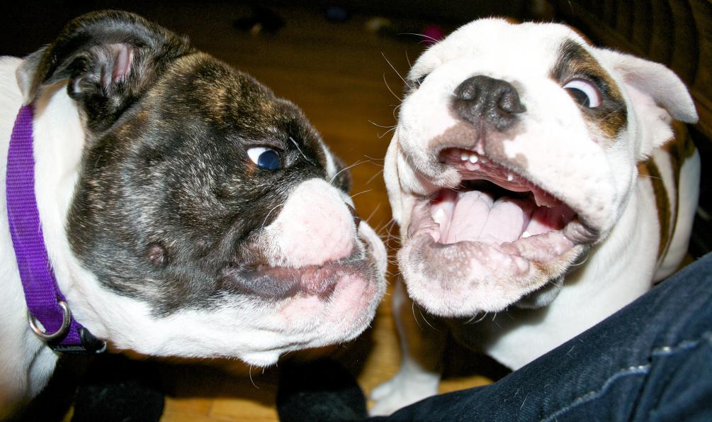 ? And they just go after each others faces also and by the time its done both their faces are soo red! Although Coop does like to go for the legs also. Gracie goes more for the lip and jaw!