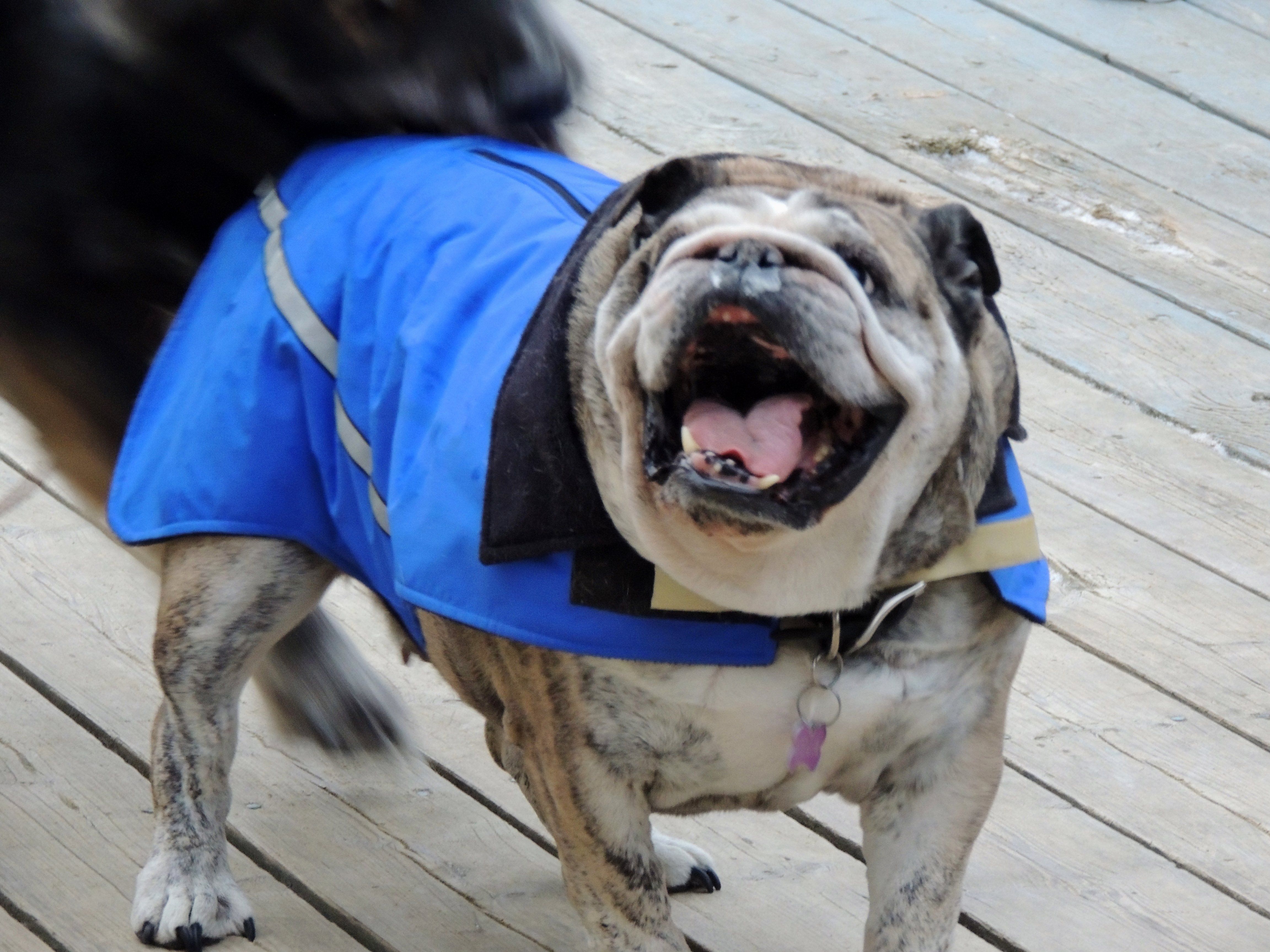Tilly in hers and Odin with his very dapper hand made Crochet coat which he hates lolI love Diva's wonderful happy smile