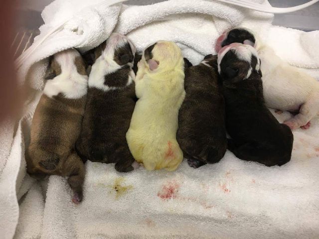 Doing a lot of reading about having a new born and a puppy together at the same time. Getting the new puppy in January or February may not work out as planned so we may be getting the new addition sometime in the 10-12 week mark so possibly in September. We we're fortunate enough to get Bogey and Juice potty trained so now our focus is re learning for the new pup. Our plan so far is to have a dog walker visit twice a day for the first few months until maternity leave kicks in. If all goes well we will have a 6 month old pup and a newborn in December. Yes, I'm catching up on sleep now... Lol.. Here is Bogey's last litter, 5 boys and two girls.View attachment 106818