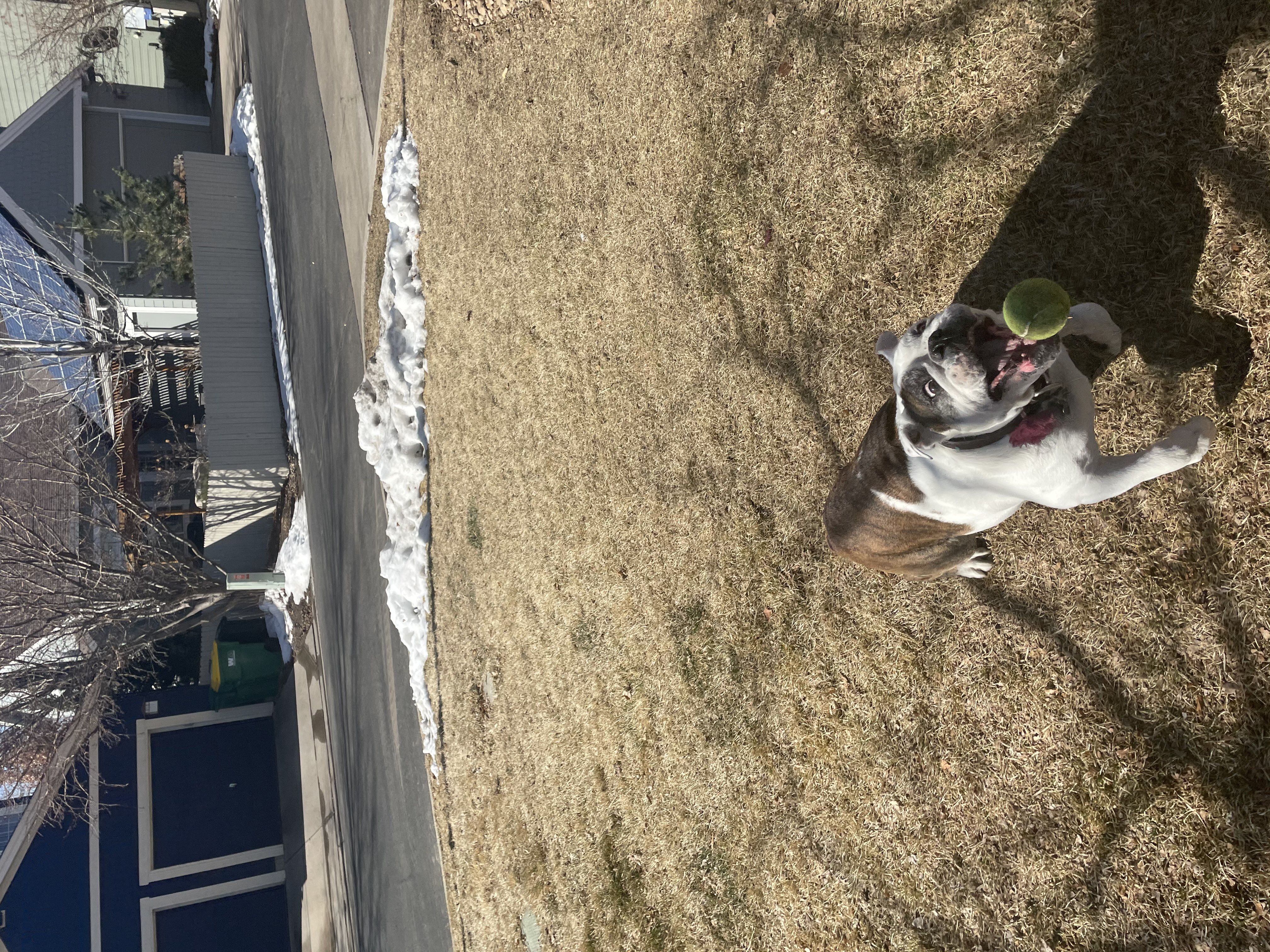 Hi! I just joined this forum! I want to introduce my bulldog Gertie! She was a rescue and we got her from a friend who fosters dogs like her. She has been with us for over a year. We think she is around 8 years old. Gertie is a professional ball chaser She is very lovey with humans but she isn't the greatest with other dogs and she snores like a truck :D.