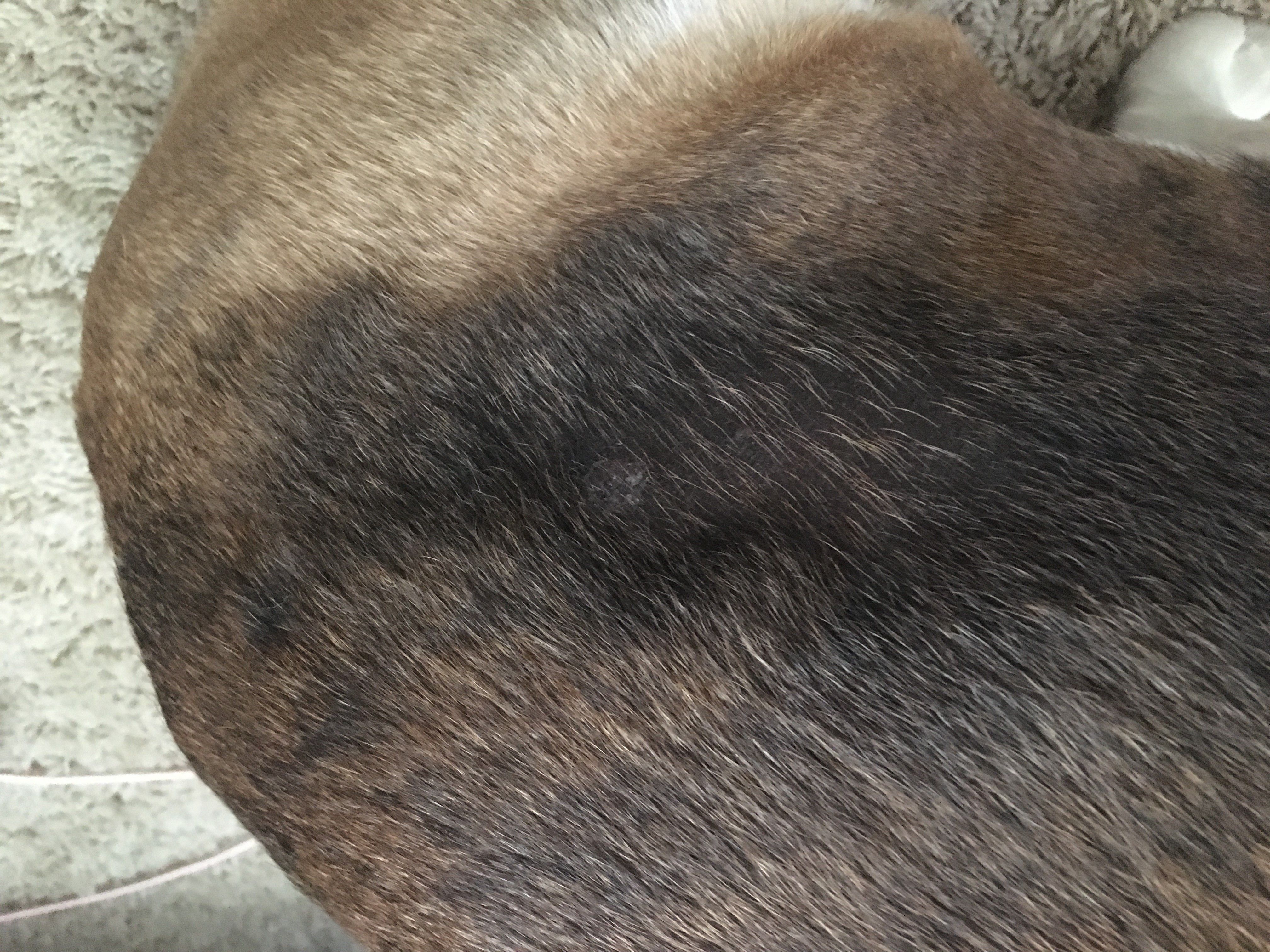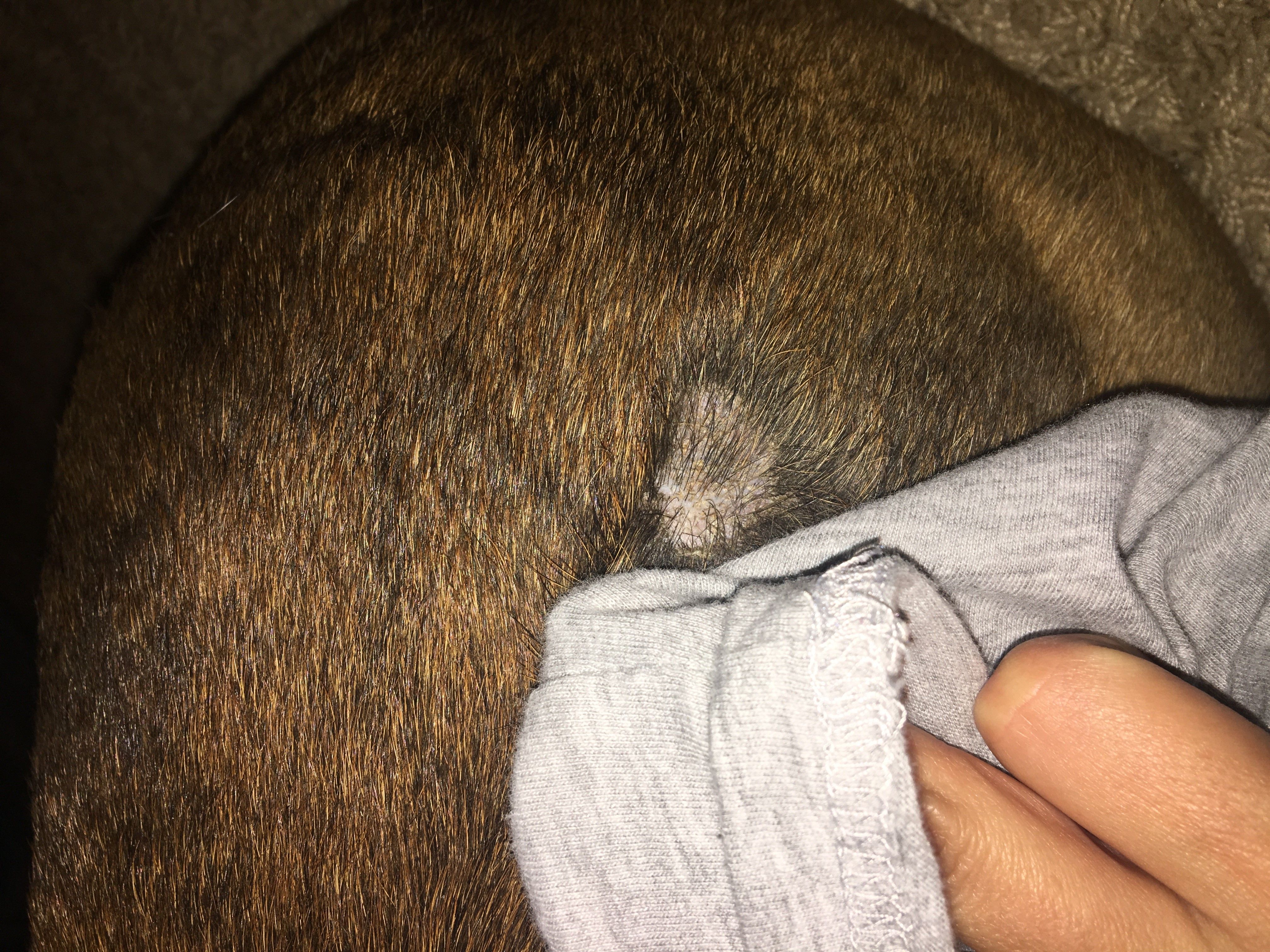 My Bulldog, Smalls, had developed what I thought was Alopecia about 9 months ago and the hair has grown back on the one side but the other side hasn't. About 2 weeks ago I noticed this raised knot on the area where the Alopecia is and didn't think much of it and then yesterday he developed a circular patch of missing hair and its crusty. He's 4 years old I feed him Zignature Lamb LIT, grain free. Can someone help me with this!!!