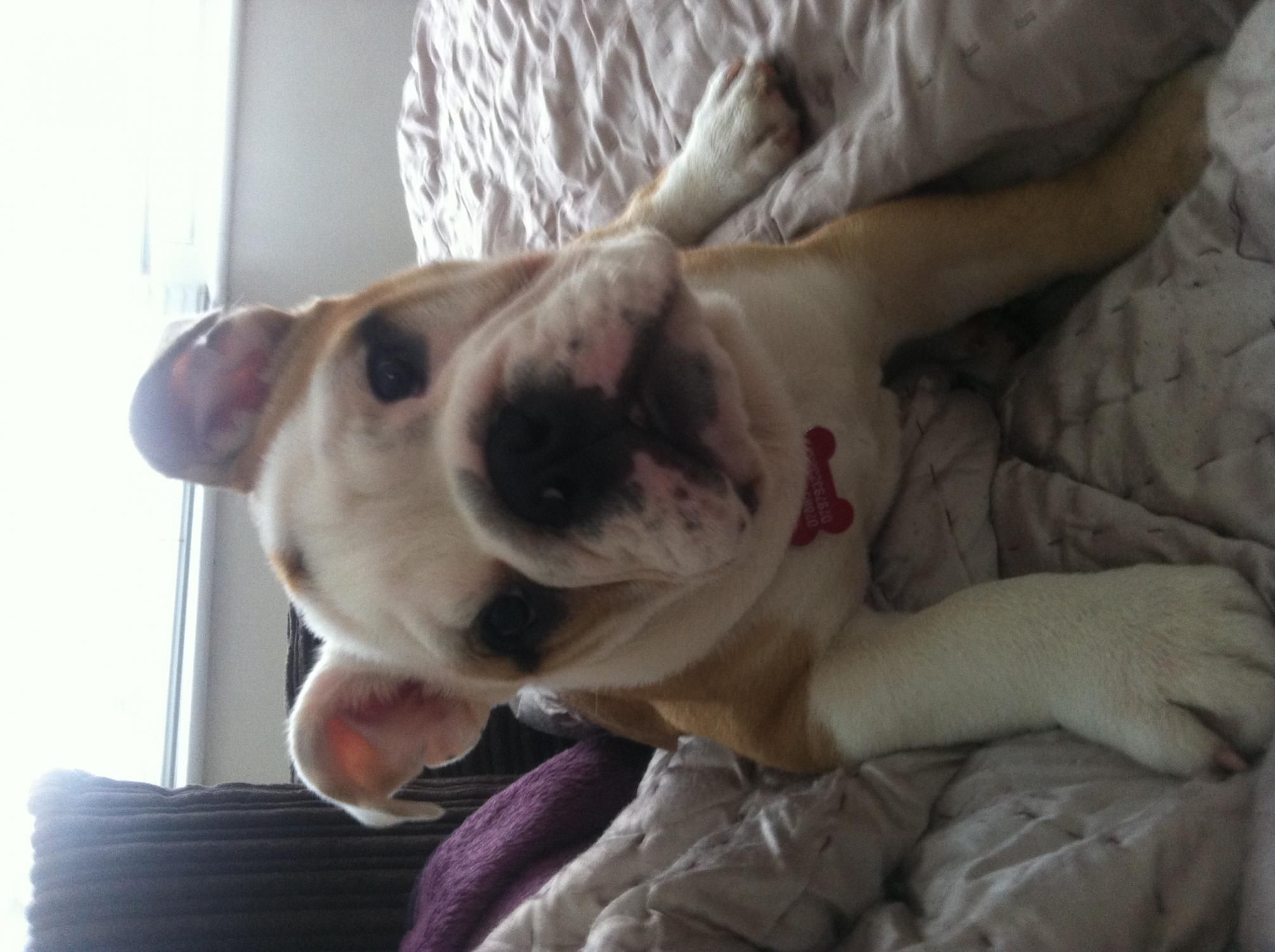 He doesn't look 8 months at all, weight is a hard thing to judge because my bullies were always on the large side⦠LOL